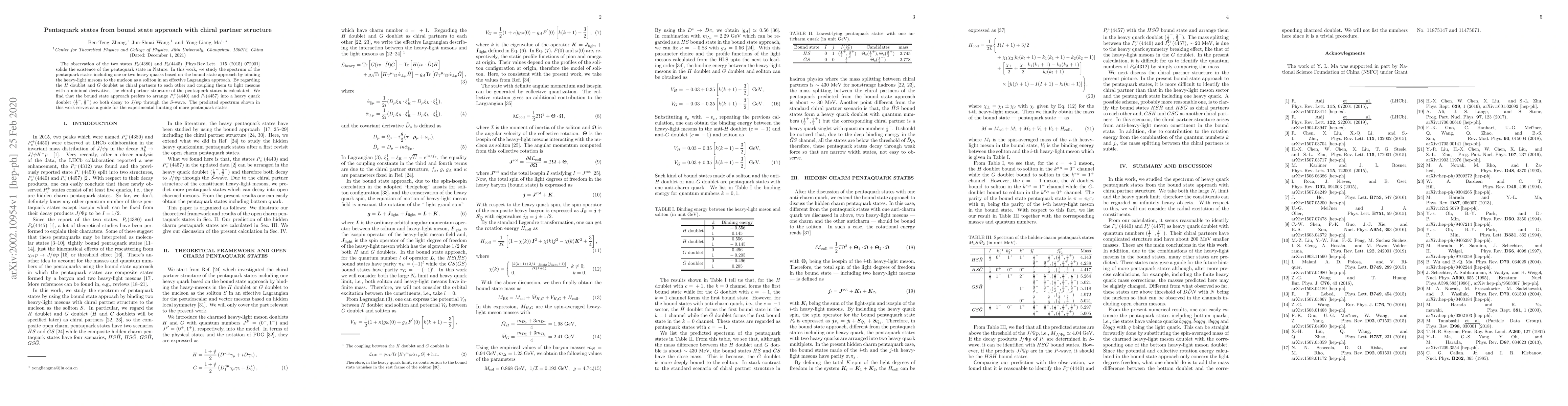 This paper investigates pentaquark states using a bound state approach, considering the chiral partner structure of $H$ and $G$ doublets. The study predicts the spectrum of pentaquark states, arranging $P_c^+(4440)$ and $P_c(4457)$ into a heavy quark doublet, both decaying via $S$-wave to $J/\psi p$.