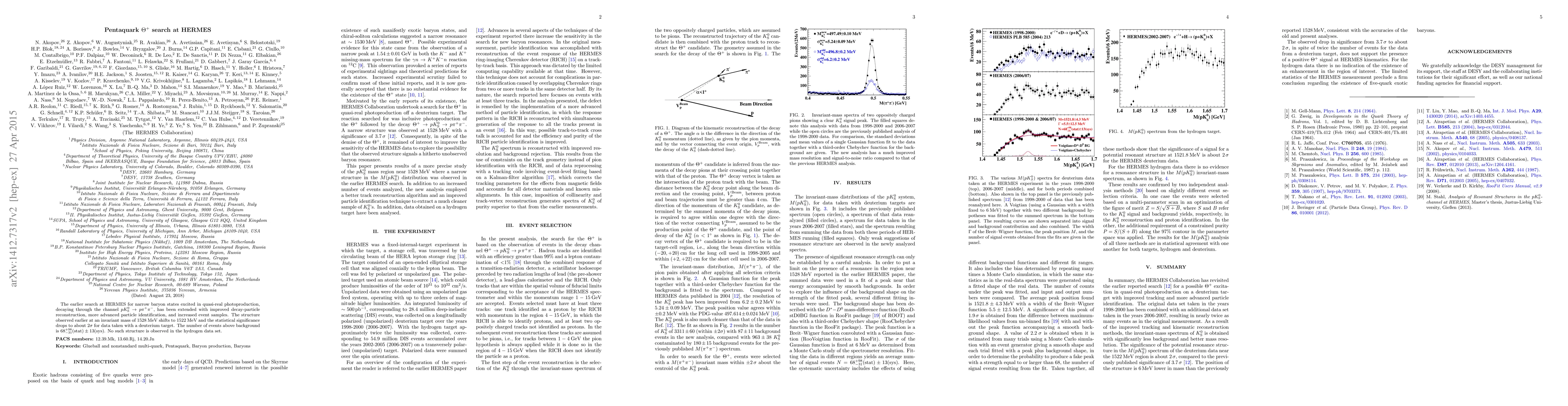The earlier search at HERMES for narrow baryon states excited in quasi-real photoproduction, decaying through the channel $pK_S^0\rightarrow p\pi^+\pi^-$, has been extended with improved decay-particle reconstruction, more advanced particle identification, and increased event samples. The structure observed earlier at an invariant mass of 1528 MeV shifts to 1522 MeV and the statistical significance drops to about 2$\sigma$ for data taken with a deuterium target. The number of events above background is $68_{-31}^{+98}\text{(stat)}\pm13\text{(sys)}$. No such structure is observed in the hydrogen data set.