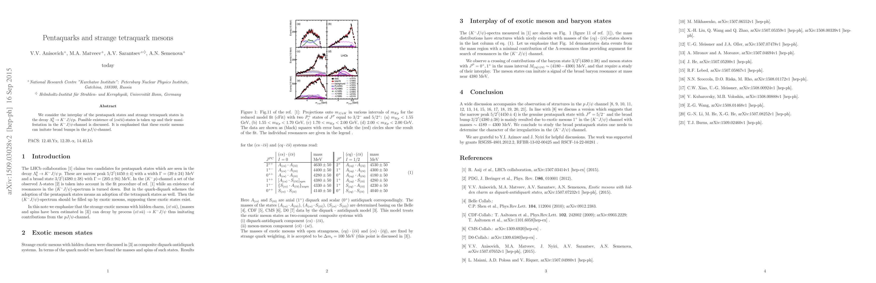 This paper explores the potential existence of ($cs\bar c\bar u$)-states within the decay $\Lambda^0_b\to K^-J/\psi p$, emphasizing how these exotic pentaquarks and strange tetraquark mesons can mimic broad bumps in the $pJ/\psi$ channel. The study highlights the complex interplay between these states in particle decay processes.