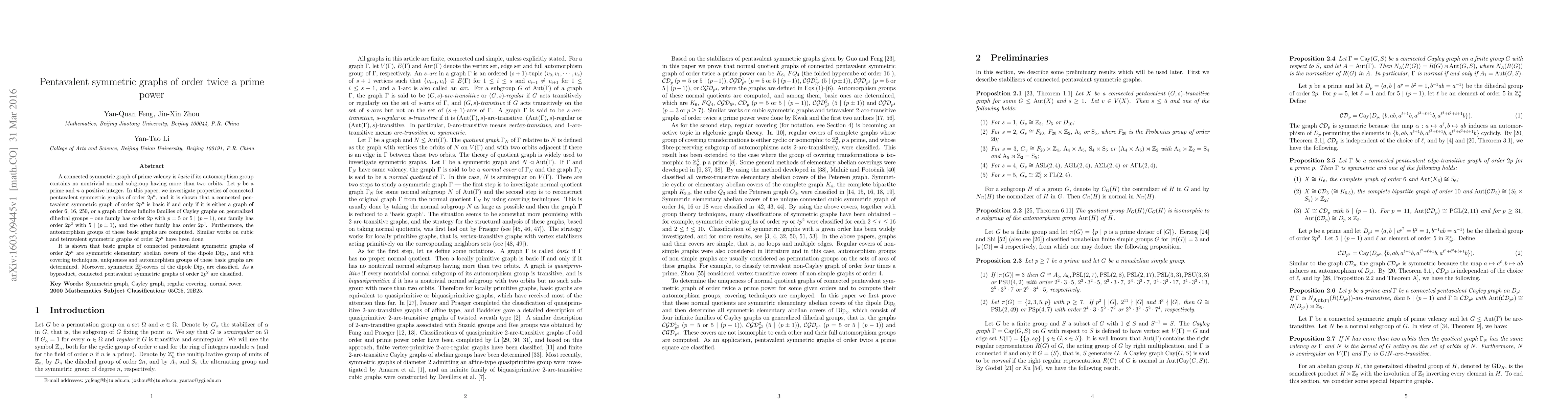 A connected symmetric graph of prime valency is {\em basic} if its automorphism group contains no nontrivial normal subgroup having more than two orbits. Let $p$ be a prime and $n$ a positive integer. In this paper, we investigate properties of connected pentavalent symmetric graphs of order $2p^n$, and it is shown that a connected pentavalent symmetric graph of order $2p^n$ is basic if and only if it is either a graph of order $6$, $16$, $250$, or a graph of three infinite families of Cayley graphs on generalized dihedral groups -- one family has order $2p$ with $p=5$ or $5 \mid (p-1)$, one family has order $2p^2$ with $5 \mid (p\pm 1)$, and the other family has order $2p^4$. Furthermore, the automorphism groups of these basic graphs are computed. Similar works on cubic and tetravalent symmetric graphs of order $2p^n$ have been done. It is shown that basic graphs of connected pentavalent symmetric graphs of order $2p^n$ are symmetric elementary abelian covers of the dipole $\Dip_5$, and with covering techniques, uniqueness and automorphism groups of these basic graphs are determined. Moreover, symmetric $\mz_p^n$-covers of the dipole $\Dip_5$ are classified. As a byproduct, connected pentavalent symmetric graphs of order $2p^2$ are classified.
