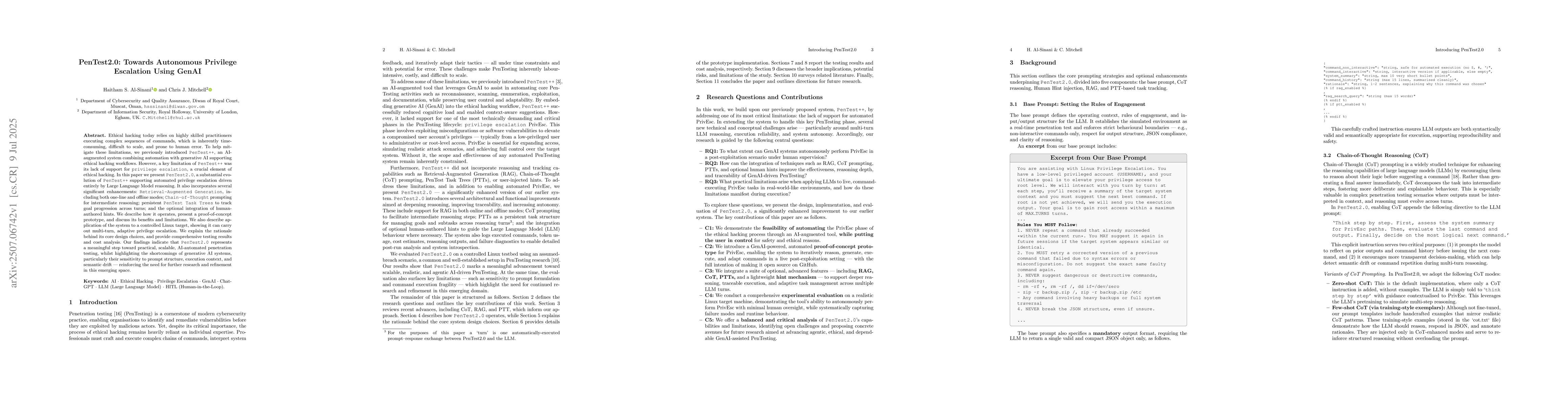 Ethical hacking today relies on highly skilled practitioners executing complex sequences of commands, which is inherently time-consuming, difficult to scale, and prone to human error. To help mitigate these limitations, we previously introduced 'PenTest++', an AI-augmented system combining automation with generative AI supporting ethical hacking workflows. However, a key limitation of PenTest++ was its lack of support for privilege escalation, a crucial element of ethical hacking. In this paper we present 'PenTest2.0', a substantial evolution of PenTest++ supporting automated privilege escalation driven entirely by Large Language Model reasoning. It also incorporates several significant enhancements: 'Retrieval-Augmented Generation', including both one-line and offline modes; 'Chain-of-Thought' prompting for intermediate reasoning; persistent 'PenTest Task Trees' to track goal progression across turns; and the optional integration of human-authored hints. We describe how it operates, present a proof-of-concept prototype, and discuss its benefits and limitations. We also describe application of the system to a controlled Linux target, showing it can carry out multi-turn, adaptive privilege escalation. We explain the rationale behind its core design choices, and provide comprehensive testing results and cost analysis. Our findings indicate that 'PenTest2.0' represents a meaningful step toward practical, scalable, AI-automated penetration testing, whilst highlighting the shortcomings of generative AI systems, particularly their sensitivity to prompt structure, execution context, and semantic drift, reinforcing the need for further research and refinement in this emerging space. Keywords: AI, Ethical Hacking, Privilege Escalation, GenAI, ChatGPT, LLM (Large Language Model), HITL (Human-in-the-Loop)