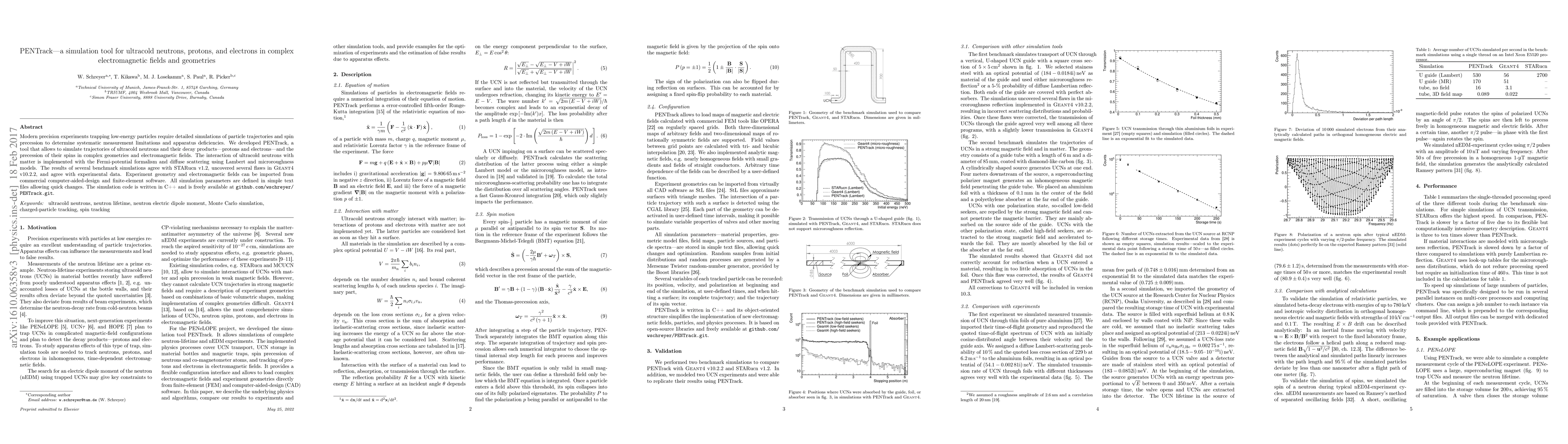 PENTrack is a C++ simulation tool developed to model the trajectories and spin precession of ultracold neutrons and their decay products in complex electromagnetic fields and geometries. It is freely available and validated against both Geant4 and experimental data.