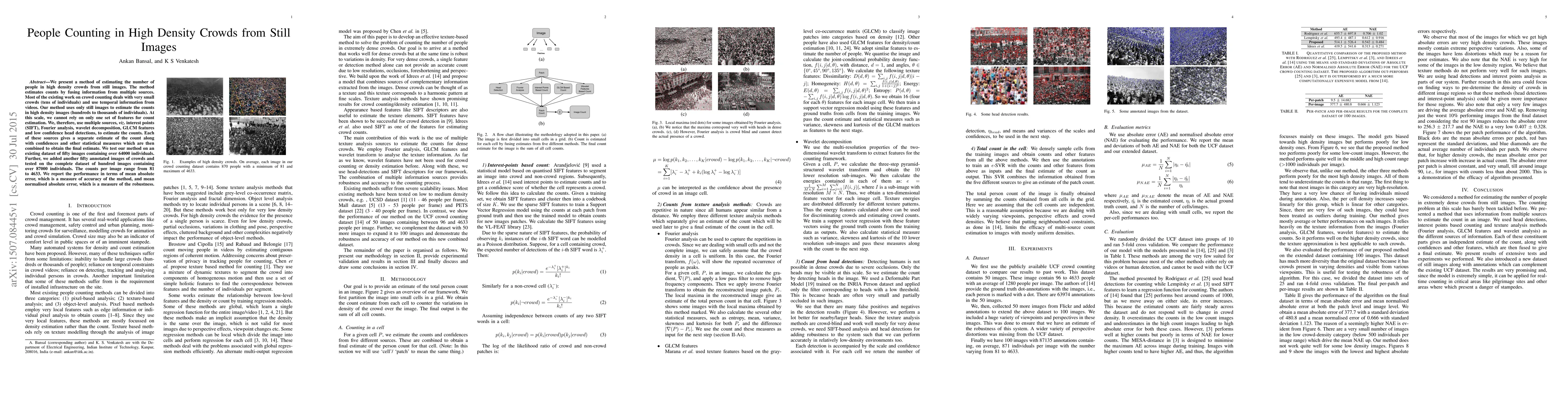 This paper proposes a method to estimate the number of people in high-density crowds from still images by fusing multiple feature sources, including SIFT, Fourier analysis, and GLCM features. The method demonstrates accuracy and robustness in counting hundreds to thousands of individuals in over 100 images.