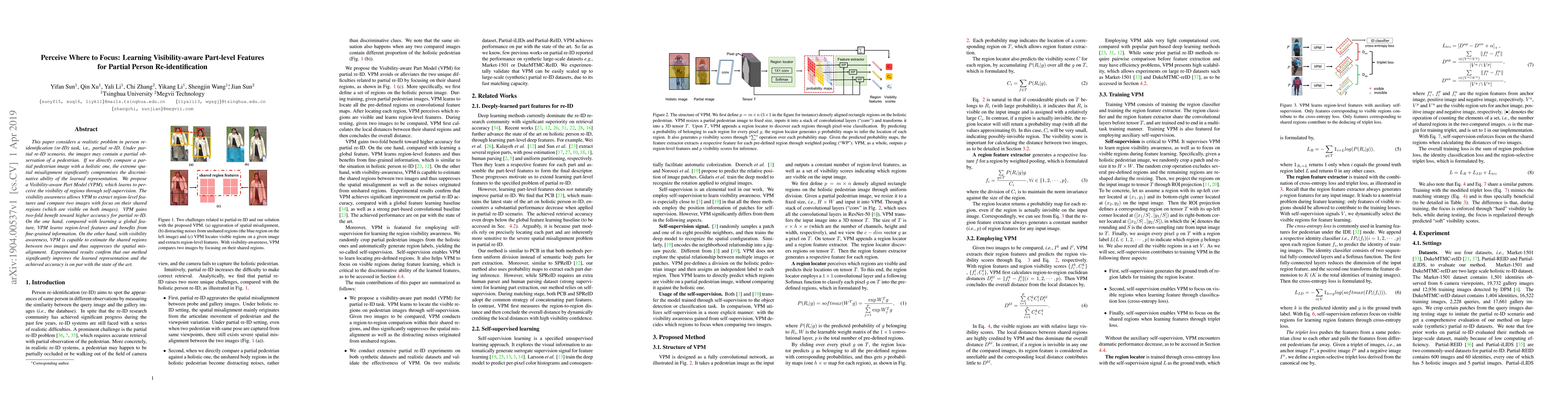 This paper proposes a Visibility-aware Part Model (VPM) to tackle partial person re-identification by learning region-level features and focusing on visible shared regions, significantly improving accuracy over global feature comparisons. The method achieves state-of-the-art results by leveraging visibility awareness to reduce spatial misalignment.