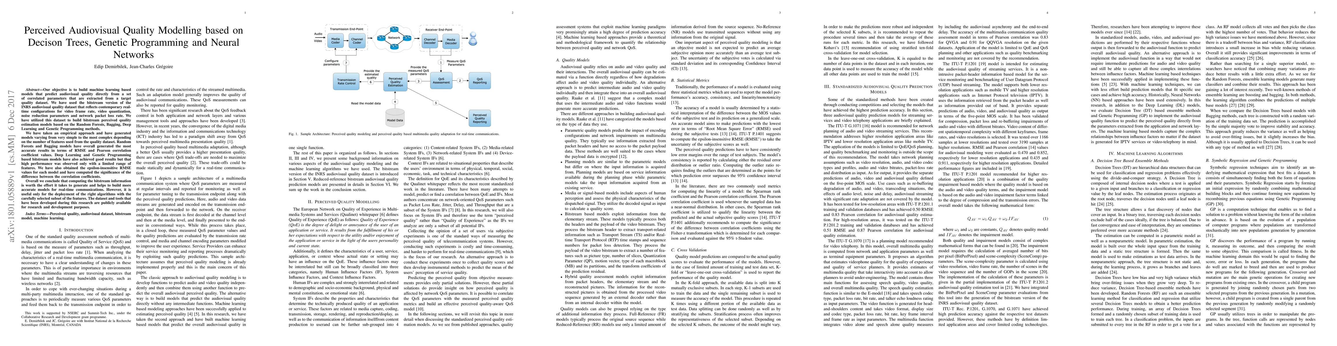 This paper develops machine learning models to predict audiovisual quality from a dataset of correlated parameters, employing Random Forests, Bagging, Deep Learning, and Genetic Programming. The study finds that Random Forests and Bagging yield the most accurate predictions, while the benefits of bitstream information are contingent on the appropriate algorithm and feature selection.