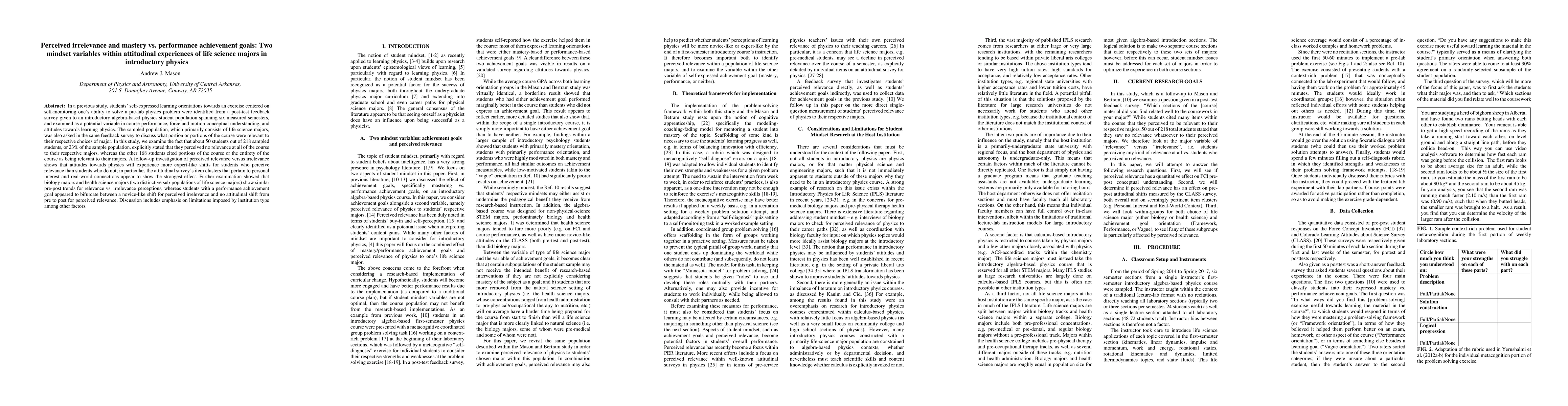 This study investigates how life science majors in introductory physics perceive the relevance of the course to their majors, finding that perceived relevance correlates strongly with more expert-like attitudinal shifts, particularly in personal interest and real-world connections. Students with a performance achievement goal showed different attitudinal shifts based on their perception of relevance.