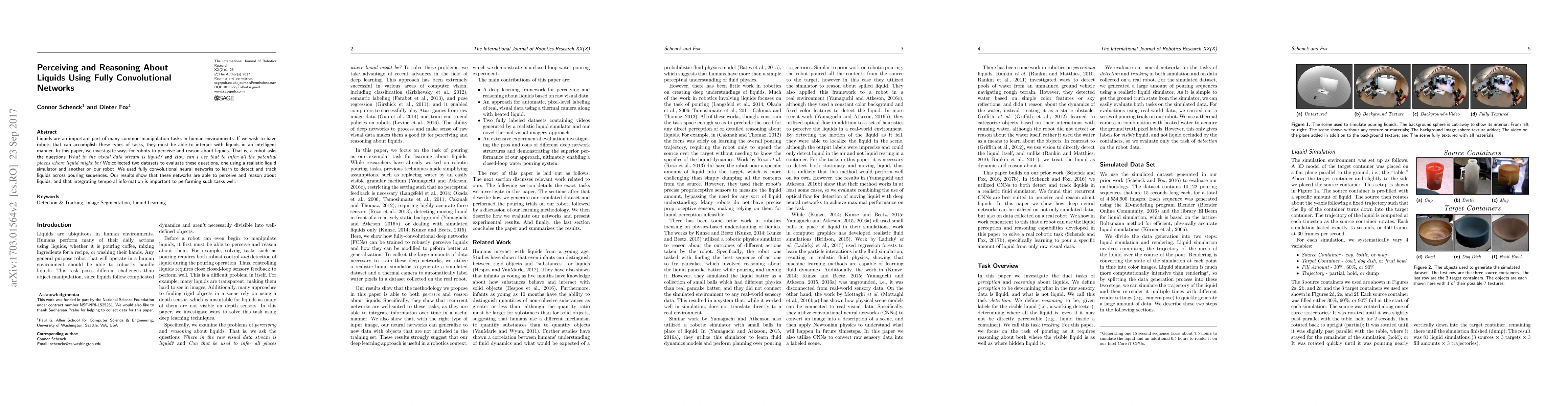 This paper explores how robots can detect and reason about liquids using fully convolutional neural networks. The study demonstrates the effectiveness of these networks in identifying and tracking liquids through pouring sequences, highlighting the importance of temporal information for accurate perception and reasoning.