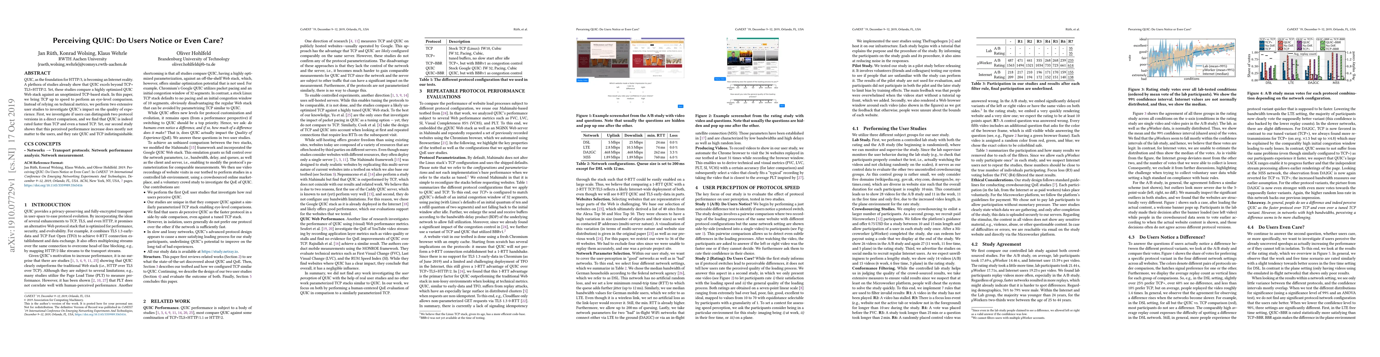 This paper investigates whether users can distinguish QUIC from TCP and if they care about the perceived performance differences. Results show users rate QUIC faster but ultimately find no significant difference in their overall experience.