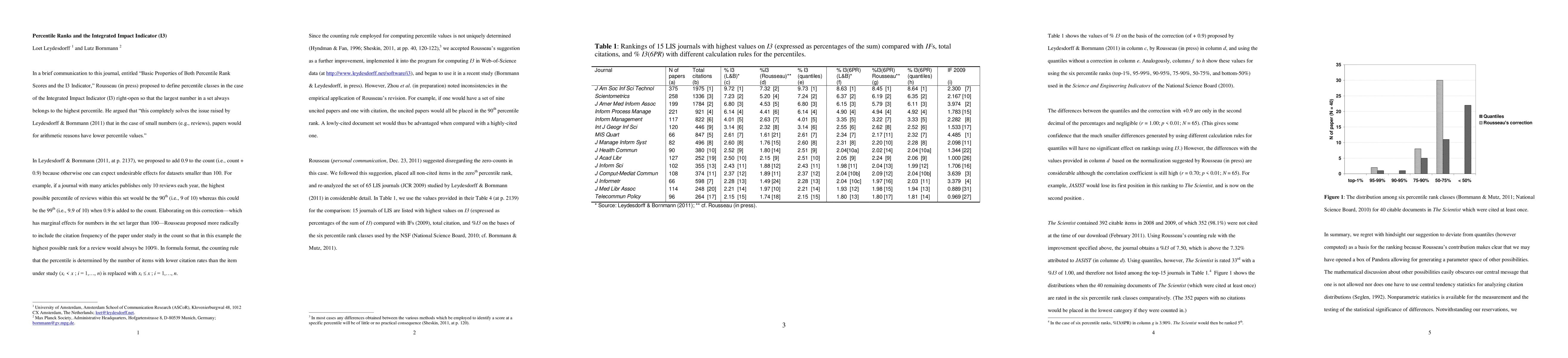 We tested Rousseau's (in press) recent proposal to define percentile classes in the case of the Integrated Impact Indicator (I3) so that the largest number in a set always belongs to the highest (100th) percentile rank class. In the case a set of nine uncited papers and one with citation, however, the uncited papers would all be placed in the 90th percentile rank. A lowly-cited document set would thus be advantaged when compared with a highly-cited one. Notwithstanding our reservations, we extended the program for computing I3 in Web-of-Science data (at http://www.leydesdorff.net/software/i3) with this option; the quantiles without a correction are now the default. As Rousseau mentions, excellence indicators (e.g., the top-10%) can be considered as special cases of I3: only two percentile rank classes are distinguished for the evaluation. Both excellence and impact indicators can be tested statistically using the z-test for independent proportions.