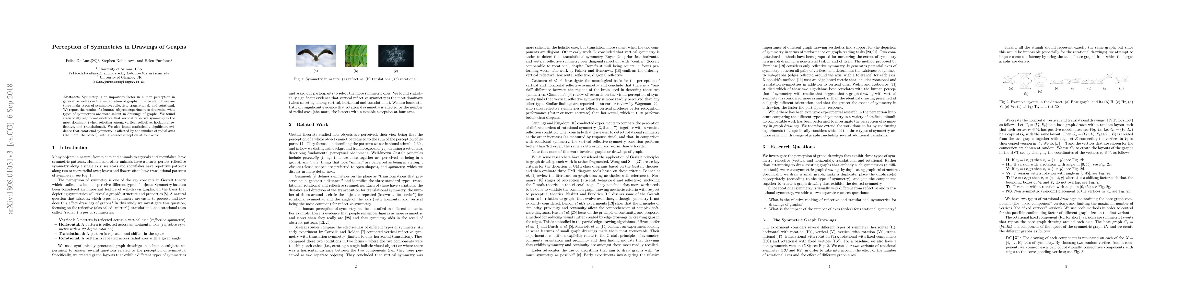 The paper presents a systematic analysis of symmetry perception in graph drawings, providing empirical evidence for the dominance of vertical reflective symmetry and the effect of radial axes on rotational symmetry recognition.