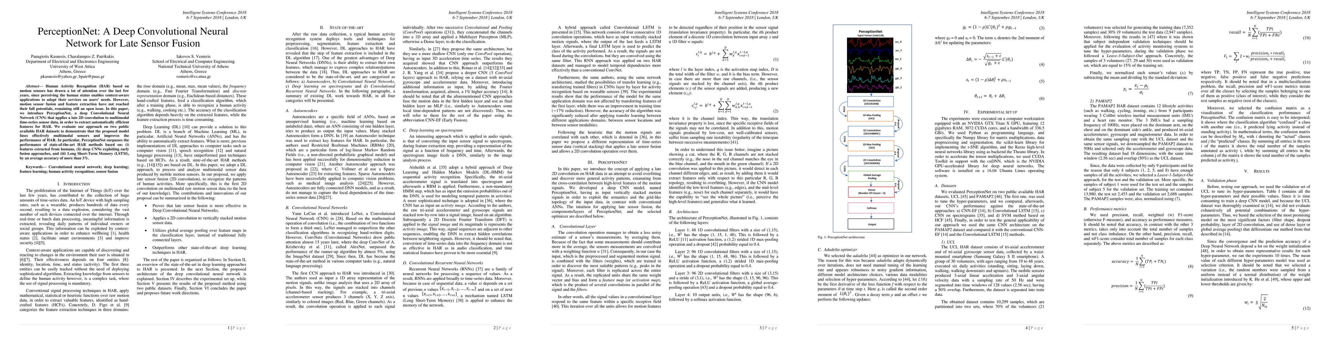 Human Activity Recognition (HAR) based on motion sensors has drawn a lot of attention over the last few years, since perceiving the human status enables context-aware applications to adapt their services on users' needs. However, motion sensor fusion and feature extraction have not reached their full potentials, remaining still an open issue. In this paper, we introduce PerceptionNet, a deep Convolutional Neural Network (CNN) that applies a late 2D convolution to multimodal time-series sensor data, in order to extract automatically efficient features for HAR. We evaluate our approach on two public available HAR datasets to demonstrate that the proposed model fuses effectively multimodal sensors and improves the performance of HAR. In particular, PerceptionNet surpasses the performance of state-of-the-art HAR methods based on: (i) features extracted from humans, (ii) deep CNNs exploiting early fusion approaches, and (iii) Long Short-Term Memory (LSTM), by an average accuracy of more than 3%.