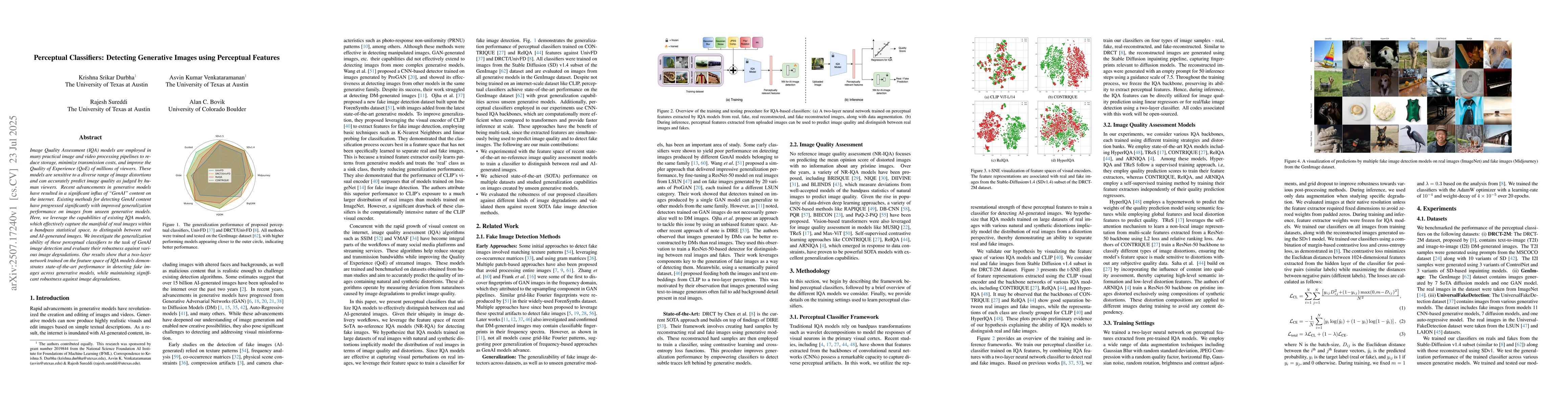 Image Quality Assessment (IQA) models are employed in many practical image and video processing pipelines to reduce storage, minimize transmission costs, and improve the Quality of Experience (QoE) of millions of viewers. These models are sensitive to a diverse range of image distortions and can accurately predict image quality as judged by human viewers. Recent advancements in generative models have resulted in a significant influx of "GenAI" content on the internet. Existing methods for detecting GenAI content have progressed significantly with improved generalization performance on images from unseen generative models. Here, we leverage the capabilities of existing IQA models, which effectively capture the manifold of real images within a bandpass statistical space, to distinguish between real and AI-generated images. We investigate the generalization ability of these perceptual classifiers to the task of GenAI image detection and evaluate their robustness against various image degradations. Our results show that a two-layer network trained on the feature space of IQA models demonstrates state-of-the-art performance in detecting fake images across generative models, while maintaining significant robustness against image degradations.