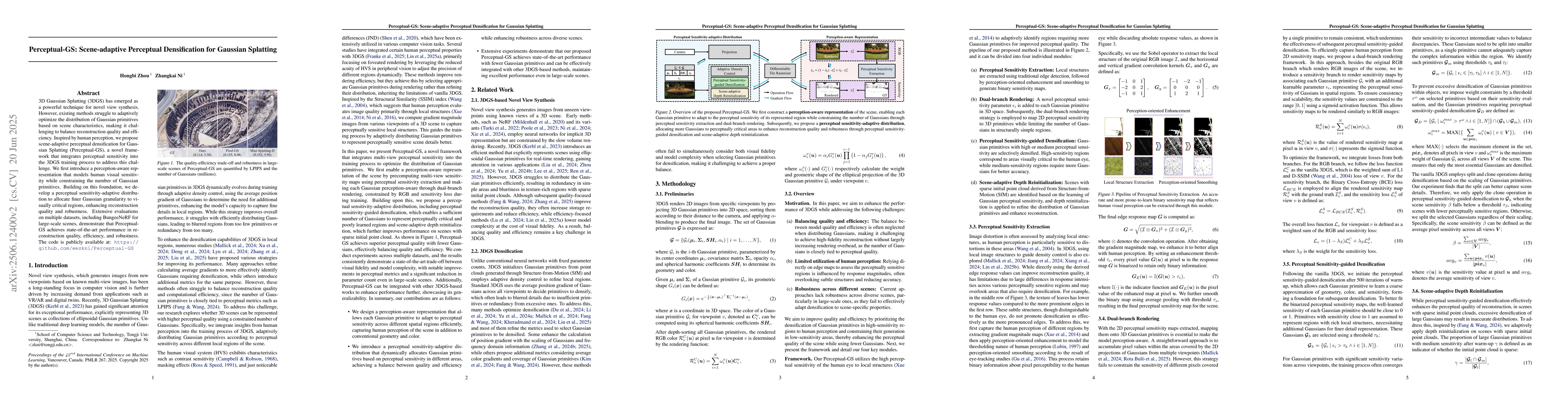 3D Gaussian Splatting (3DGS) has emerged as a powerful technique for novel view synthesis. However, existing methods struggle to adaptively optimize the distribution of Gaussian primitives based on scene characteristics, making it challenging to balance reconstruction quality and efficiency. Inspired by human perception, we propose scene-adaptive perceptual densification for Gaussian Splatting (Perceptual-GS), a novel framework that integrates perceptual sensitivity into the 3DGS training process to address this challenge. We first introduce a perception-aware representation that models human visual sensitivity while constraining the number of Gaussian primitives. Building on this foundation, we develop a perceptual sensitivity-adaptive distribution to allocate finer Gaussian granularity to visually critical regions, enhancing reconstruction quality and robustness. Extensive evaluations on multiple datasets, including BungeeNeRF for large-scale scenes, demonstrate that Perceptual-GS achieves state-of-the-art performance in reconstruction quality, efficiency, and robustness. The code is publicly available at: https://github.com/eezkni/Perceptual-GS