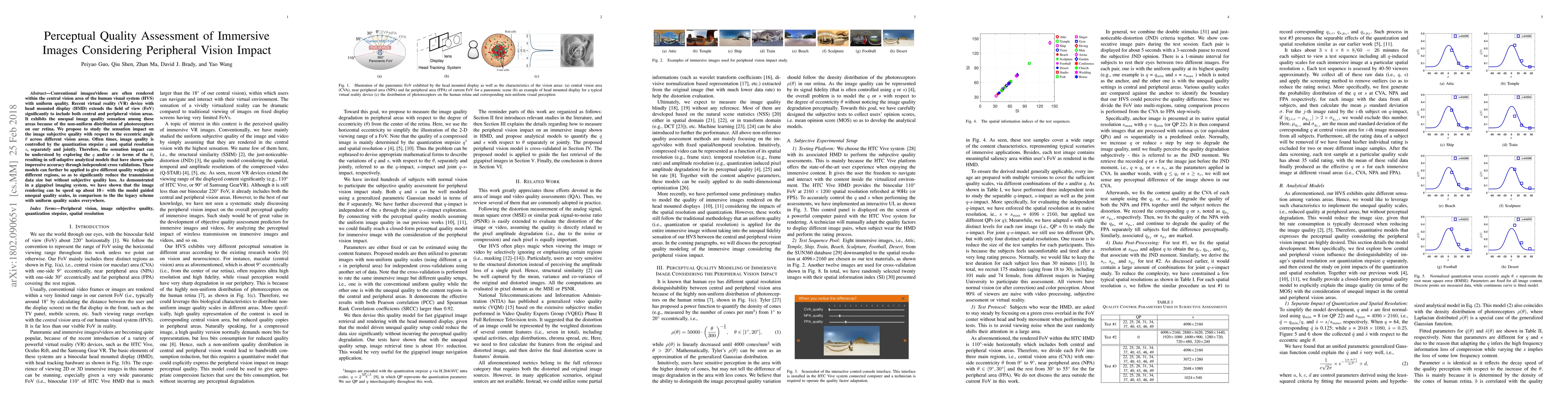 Conventional images/videos are often rendered within the central vision area of the human visual system (HVS) with uniform quality. Recent virtual reality (VR) device with head mounted display (HMD) extends the field of view (FoV) significantly to include both central and peripheral vision areas. It exhibits the unequal image quality sensation among these areas because of the non-uniform distribution of photoreceptors on our retina. We propose to study the sensation impact on the image subjective quality with respect to the eccentric angle $\theta$ across different vision areas. Often times, image quality is controlled by the quantization stepsize $q$ and spatial resolution $s$, separately and jointly. Therefore, the sensation impact can be understood by exploring the $q$ and/or $s$ in terms of the $\theta$, resulting in self-adaptive analytical models that have shown quite impressive accuracy through independent cross validations. These models can further be applied to give different quality weights at different regions, so as to significantly reduce the transmission data size but without subjective quality loss. As demonstrated in a gigapixel imaging system, we have shown that the image rendering can be speed up about 10$\times$ with the model guided unequal quality scales, in comparison to the the legacy scheme with uniform quality scales everywhere.