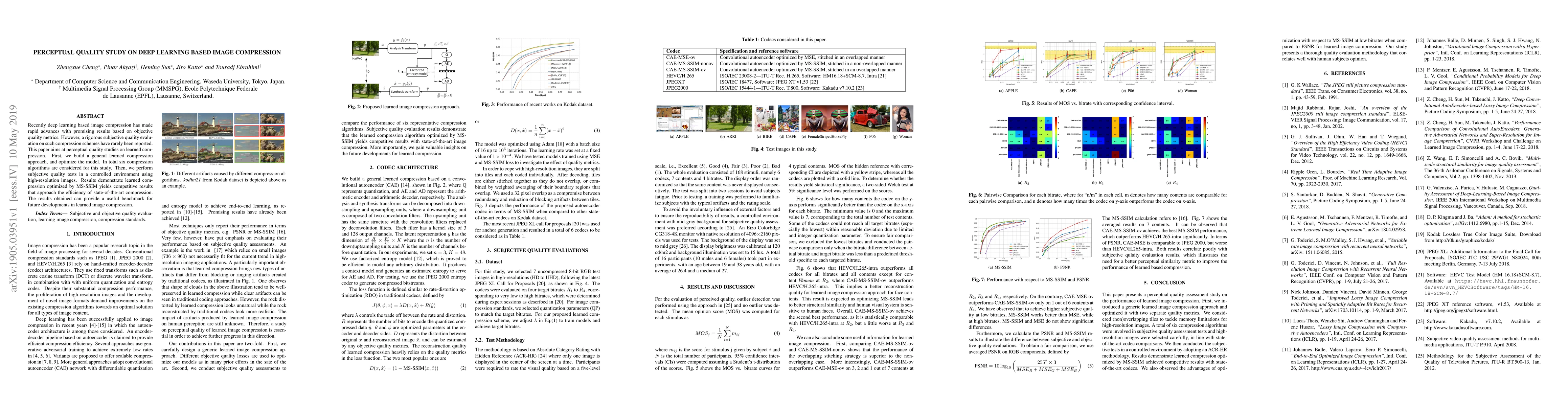 This paper investigates the perceptual quality of deep learning-based image compression methods through subjective tests. The study optimizes six compression algorithms, finding that those optimized by MS-SSIM achieve competitive results, approaching the efficiency of state-of-the-art compression, providing a benchmark for future research.