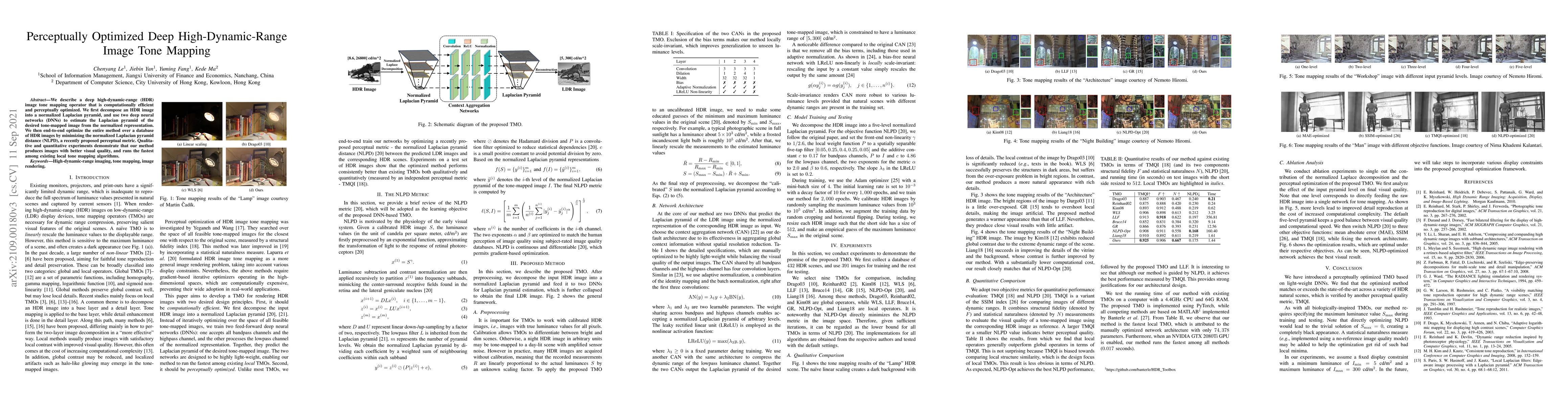 We describe a deep high-dynamic-range (HDR) image tone mapping operator that is computationally efficient and perceptually optimized. We first decompose an HDR image into a normalized Laplacian pyramid, and use two deep neural networks (DNNs) to estimate the Laplacian pyramid of the desired tone-mapped image from the normalized representation. We then end-to-end optimize the entire method over a database of HDR images by minimizing the normalized Laplacian pyramid distance (NLPD), a recently proposed perceptual metric. Qualitative and quantitative experiments demonstrate that our method produces images with better visual quality, and runs the fastest among existing local tone mapping algorithms.