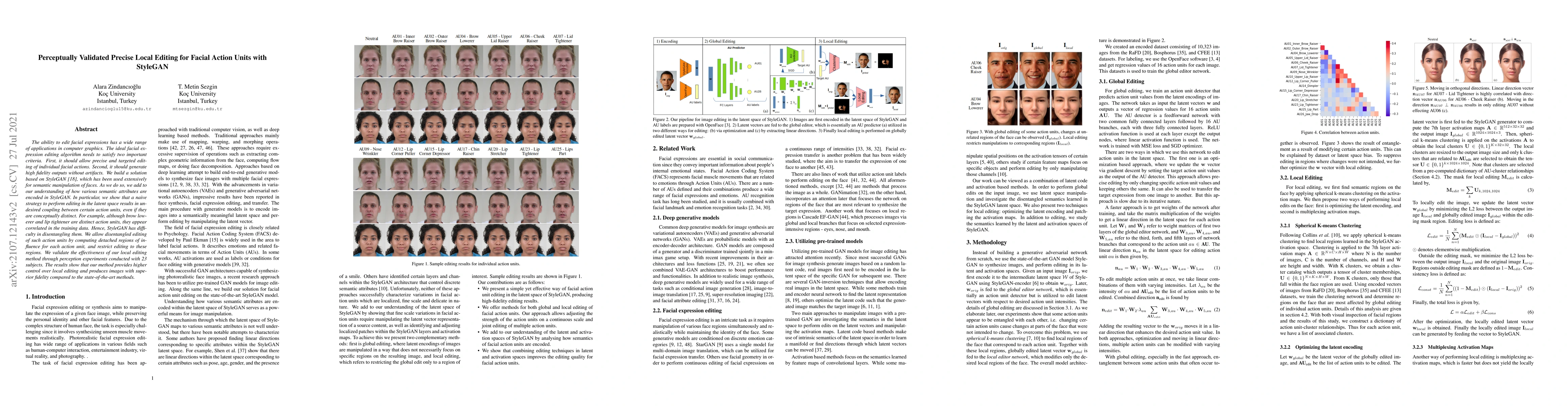 This paper presents a method for precise local editing of facial action units using StyleGAN, addressing the challenge of coupling between distinct action units. The proposed approach disentangles action units by computing specific regions of influence, validated through perception experiments showing superior fidelity and control over local editing compared to existing methods.