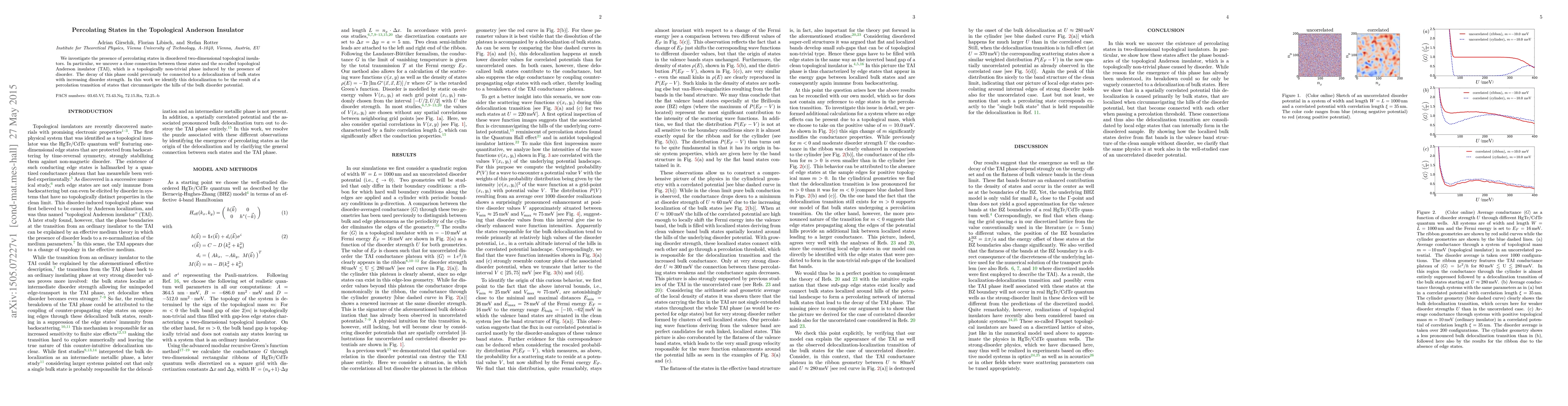 This paper explores the emergence of percolating states in disordered two-dimensional topological insulators, revealing a link between these states and the topological Anderson insulator (TAI). It identifies the delocalization of bulk states with increasing disorder as a percolation transition of states navigating the disorder potential.
