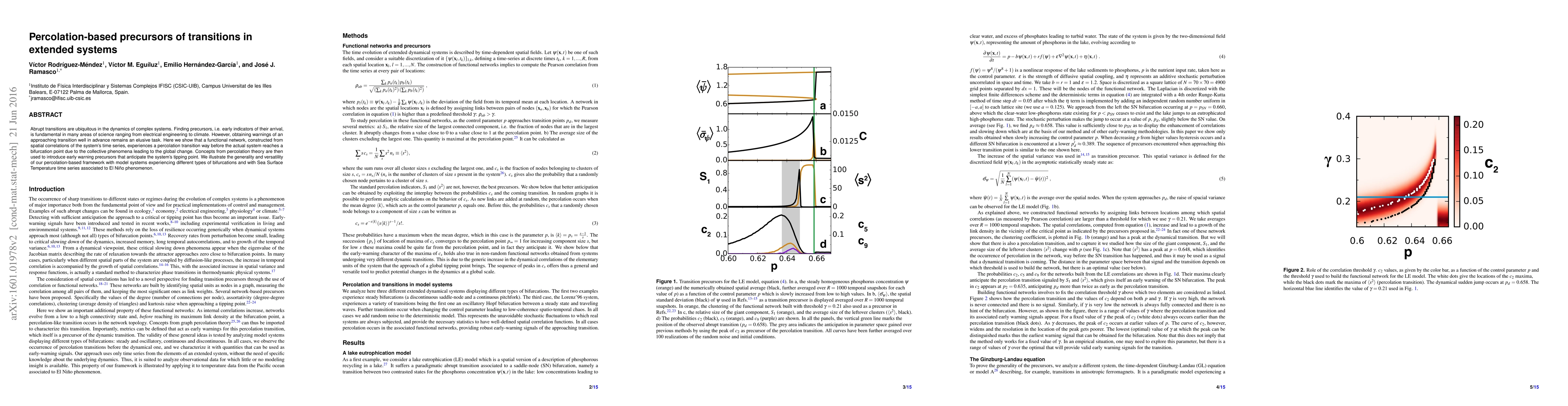 This paper demonstrates that a percolation-based network constructed from spatial correlations in system time series can predict abrupt transitions well before they occur. It introduces early warning signals using percolation theory to anticipate tipping points in various complex systems.