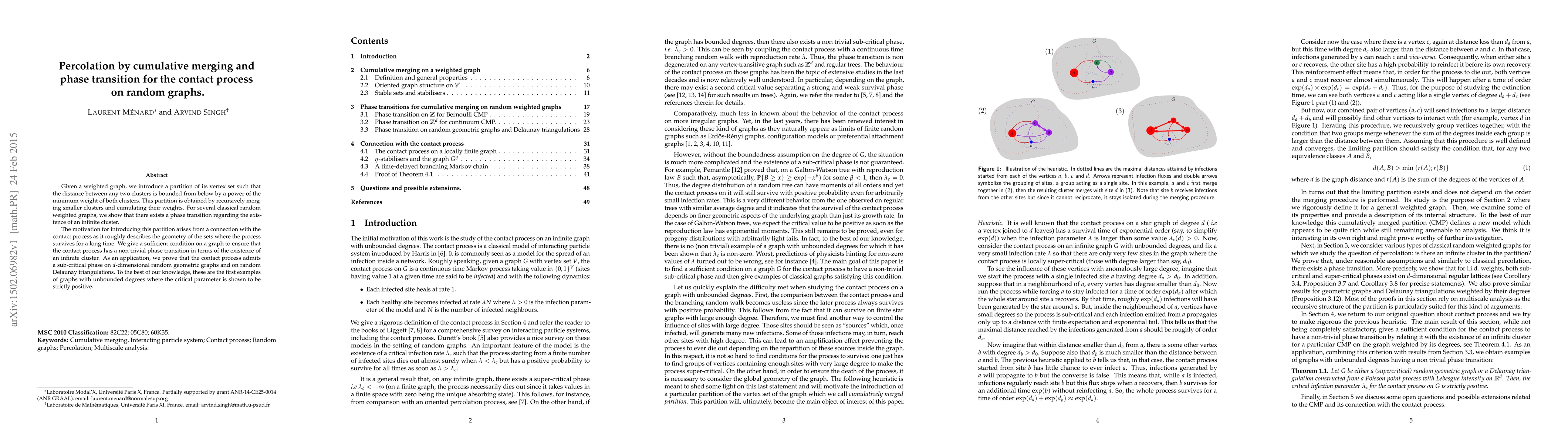 This paper introduces a partition method for weighted graphs that merges clusters based on their minimum weight, demonstrating a phase transition in the contact process on several classical random graphs. It provides a condition for non-trivial phase transition and shows the existence of a sub-critical phase in random geometric graphs and random Delaunay triangulations.