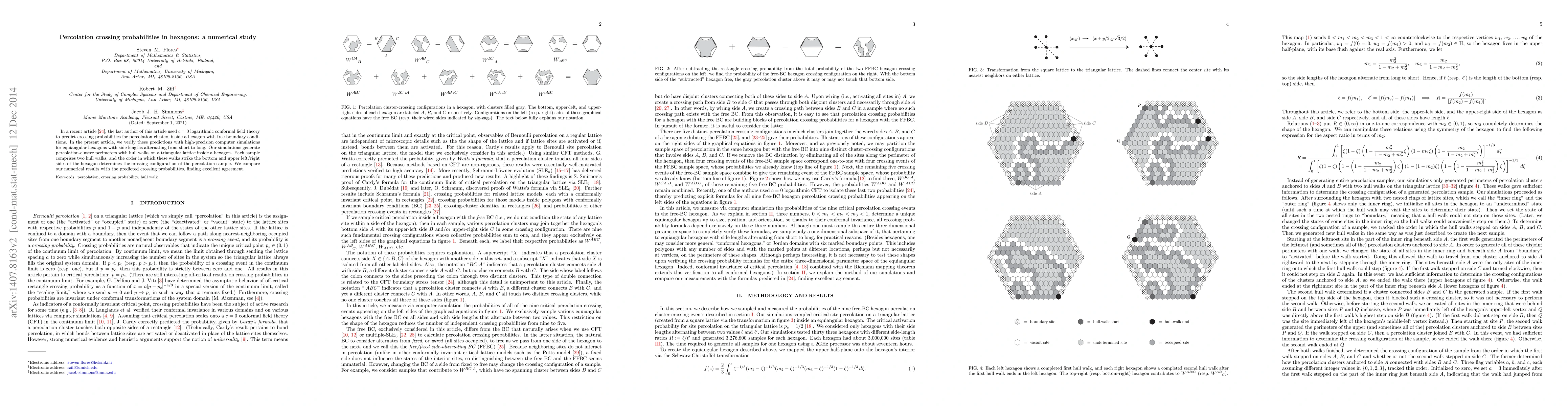 This paper verifies logarithmic conformal field theory predictions of crossing probabilities for percolation clusters within hexagons using high-precision computer simulations. The simulations employ hull walks on a triangular lattice, and results show excellent agreement with the theoretical predictions.