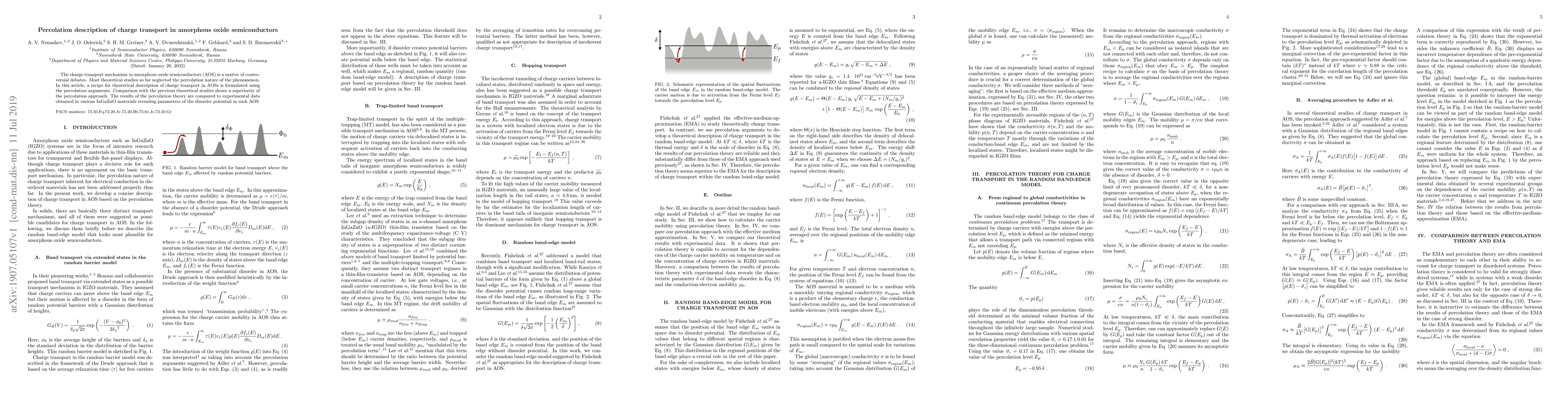 A new approach using percolation theory is used to describe charge transport in amorphous oxide semiconductors, showing a superior fit to experimental data compared to previous theories.
