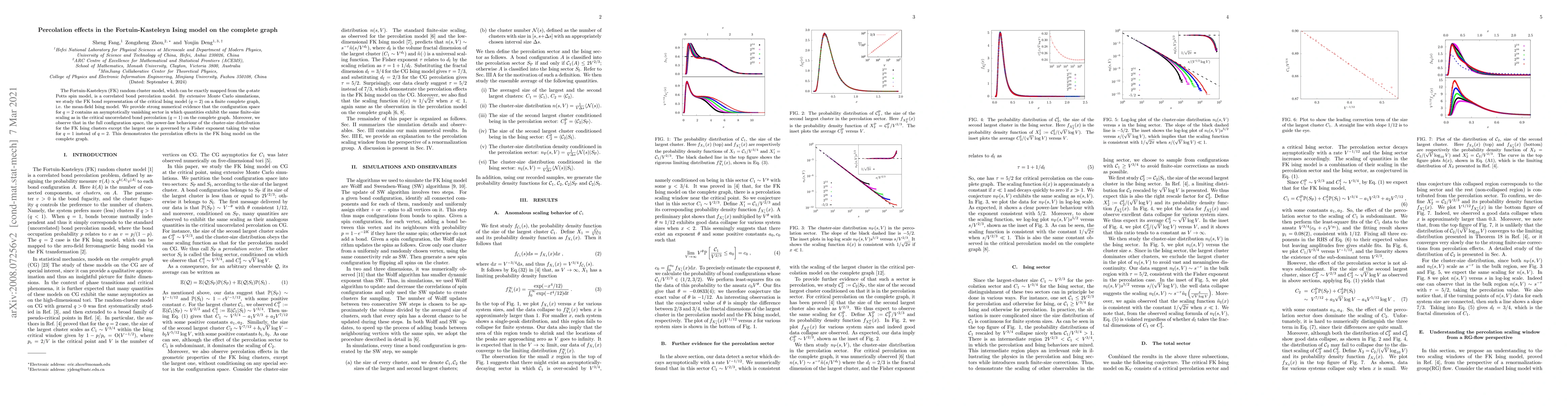 The Fortuin-Kasteleyn (FK) random cluster model, which can be exactly mapped from the $q$-state Potts spin model, is a correlated bond percolation model. By extensive Monte Carlo simulations, we study the FK bond representation of the critical Ising model ($q=2$) on a finite complete graph, i.e. the mean-field Ising model. We provide strong numerical evidence that the configuration space for $q=2$ contains an asymptotically vanishing sector in which quantities exhibit the same finite-size scaling as in the critical uncorrelated bond percolation ($q=1$) on the complete graph. Moreover, we observe that in the full configuration space, the power-law behaviour of the cluster-size distribution for the FK Ising clusters except the largest one is governed by a Fisher exponent taking the value for $q=1$ instead of $q=2$. This demonstrates the percolation effects in the FK Ising model on the complete graph.