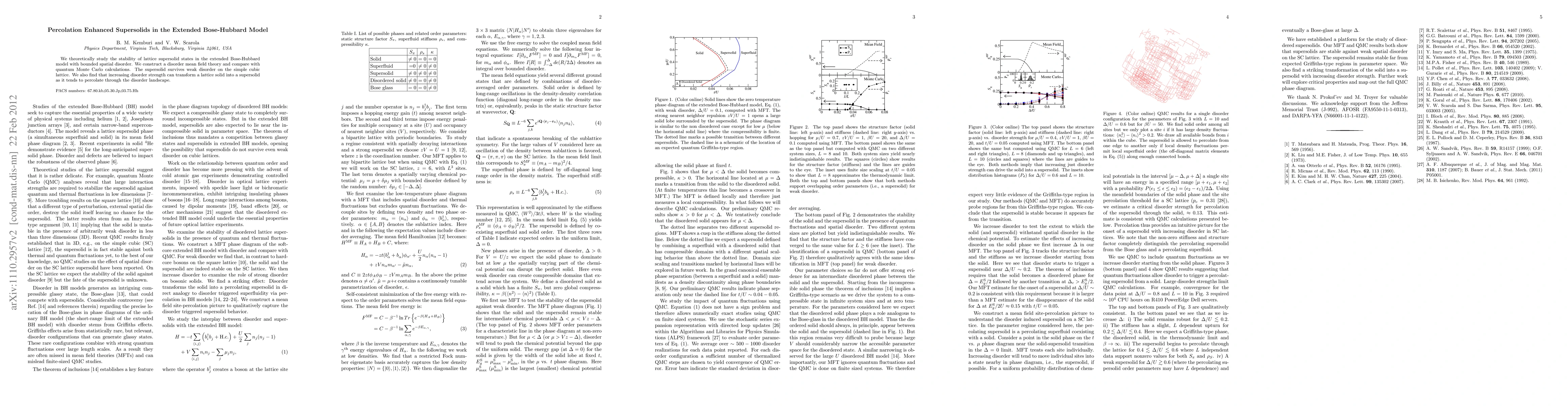 This paper investigates the stability of supersolid states in the extended Bose-Hubbard model under spatial disorder, finding that weak disorder maintains supersolidity while stronger disorder can transform a lattice solid into a supersolid through percolation effects. Theoretical and quantum Monte Carlo analyses support these findings.