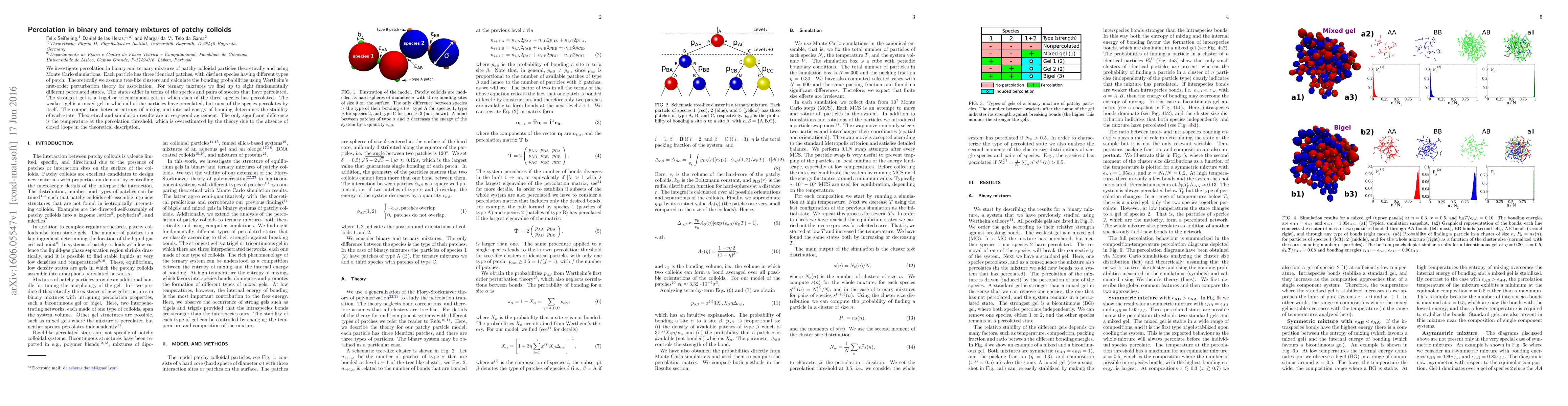 This paper investigates percolation in binary and ternary mixtures of patchy colloidal particles, revealing up to eight distinct percolated states determined by the competition between mixing entropy and bonding energy. Theoretical and simulation results show good agreement, except for the temperature at the percolation threshold, which is overestimated by the theory.