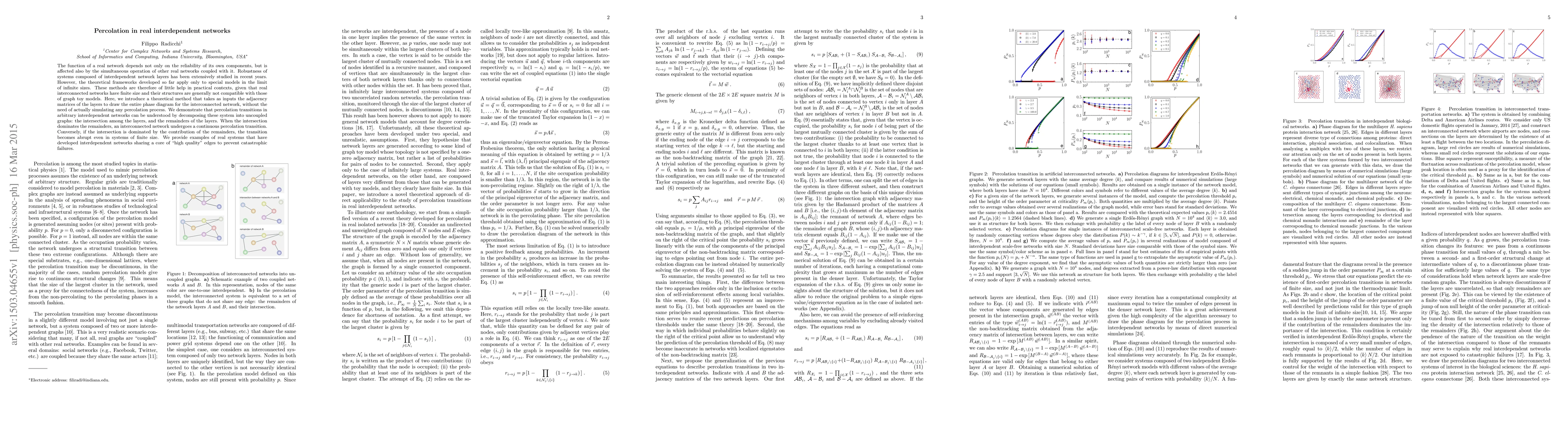 The function of a real network depends not only on the reliability of its own components, but is affected also by the simultaneous operation of other real networks coupled with it. Robustness of systems composed of interdependent network layers has been extensively studied in recent years. However, the theoretical frameworks developed so far apply only to special models in the limit of infinite sizes. These methods are therefore of little help in practical contexts, given that real interconnected networks have finite size and their structures are generally not compatible with those of graph toy models. Here, we introduce a theoretical method that takes as inputs the adjacency matrices of the layers to draw the entire phase diagram for the interconnected network, without the need of actually simulating any percolation process. We demonstrate that percolation transitions in arbitrary interdependent networks can be understood by decomposing these system into uncoupled graphs: the intersection among the layers, and the remainders of the layers. When the intersection dominates the remainders, an interconnected network undergoes a continuous percolation transition. Conversely, if the intersection is dominated by the contribution of the remainders, the transition becomes abrupt even in systems of finite size. We provide examples of real systems that have developed interdependent networks sharing a core of "high quality" edges to prevent catastrophic failures.