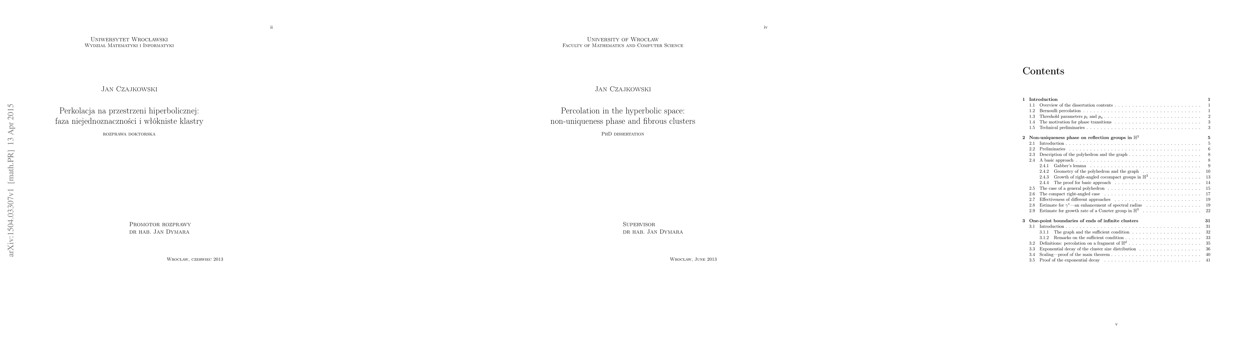 The research extends previous work on percolation theory by applying it to hyperbolic spaces, specifically Coxeter reflection groups, and identifies a non-uniqueness phase that was not previously characterized in this context.