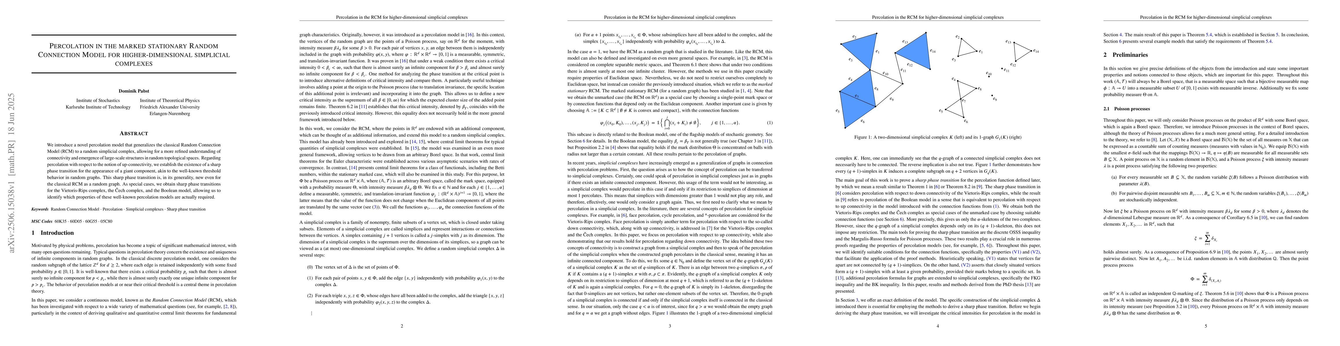 We introduce a novel percolation model that generalizes the classical Random Connection Model (RCM) to a random simplicial complex, allowing for a more refined understanding of connectivity and emergence of large-scale structures in random topological spaces. Regarding percolation with respect to the notion of up-connectivity, we establish the existence of a sharp phase transition for the appearance of a giant component, akin to the well-known threshold behavior in random graphs. This sharp phase transition is, in its generality, new even for the classical RCM as a random graph. As special cases, we obtain sharp phase transitions for the Vietoris-Rips complex, the Cech complex, and the Boolean model, allowing us to identify which properties of these well-known percolation models are actually required.