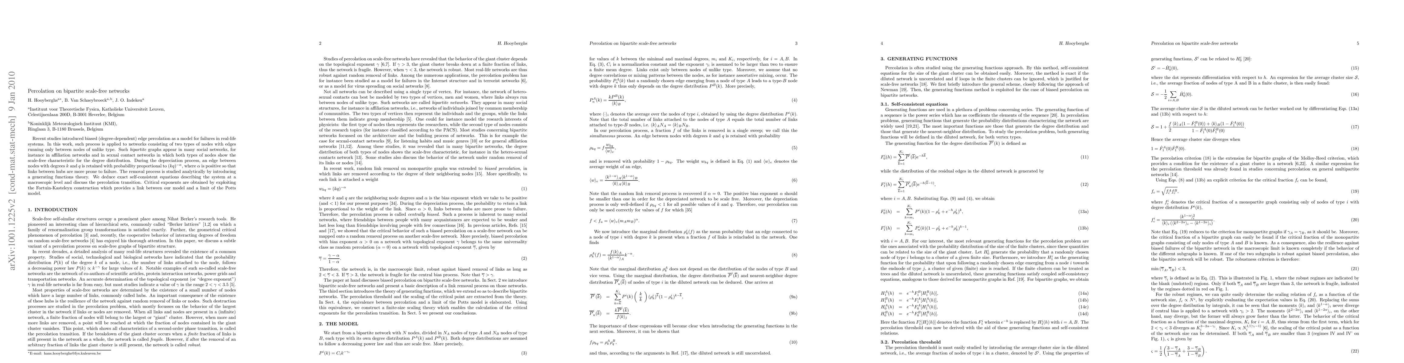 Recent studies introduced biased (degree-dependent) edge percolation as a model for failures in real-life systems. In this work, such process is applied to networks consisting of two types of nodes with edges running only between nodes of unlike type. Such bipartite graphs appear in many social networks, for instance in affiliation networks and in sexual contact networks in which both types of nodes show the scale-free characteristic for the degree distribution. During the depreciation process, an edge between nodes with degrees k and q is retained with probability proportional to (kq)^(-alpha), where alpha is positive so that links between hubs are more prone to failure. The removal process is studied analytically by introducing a generating functions theory. We deduce exact self-consistent equations describing the system at a macroscopic level and discuss the percolation transition. Critical exponents are obtained by exploiting the Fortuin-Kasteleyn construction which provides a link between our model and a limit of the Potts model.