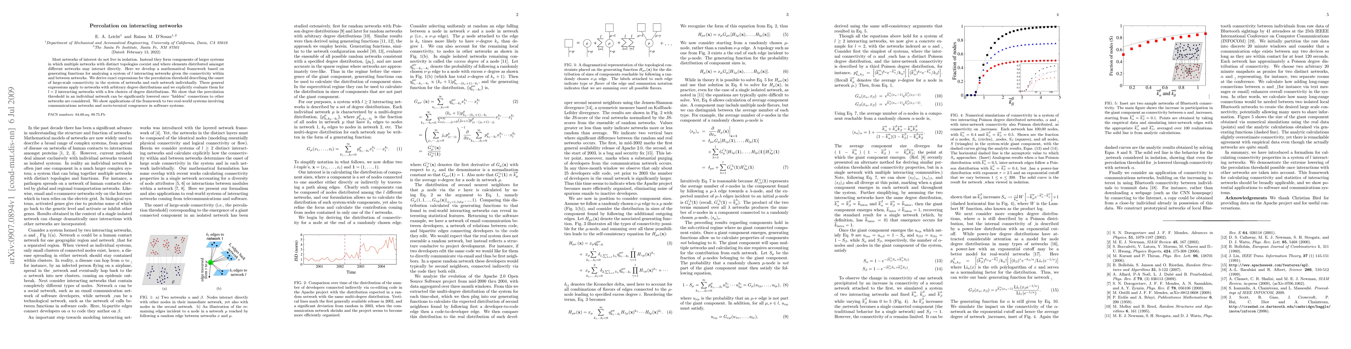 A novel approach to calculating connectivity properties in interacting networks is presented.