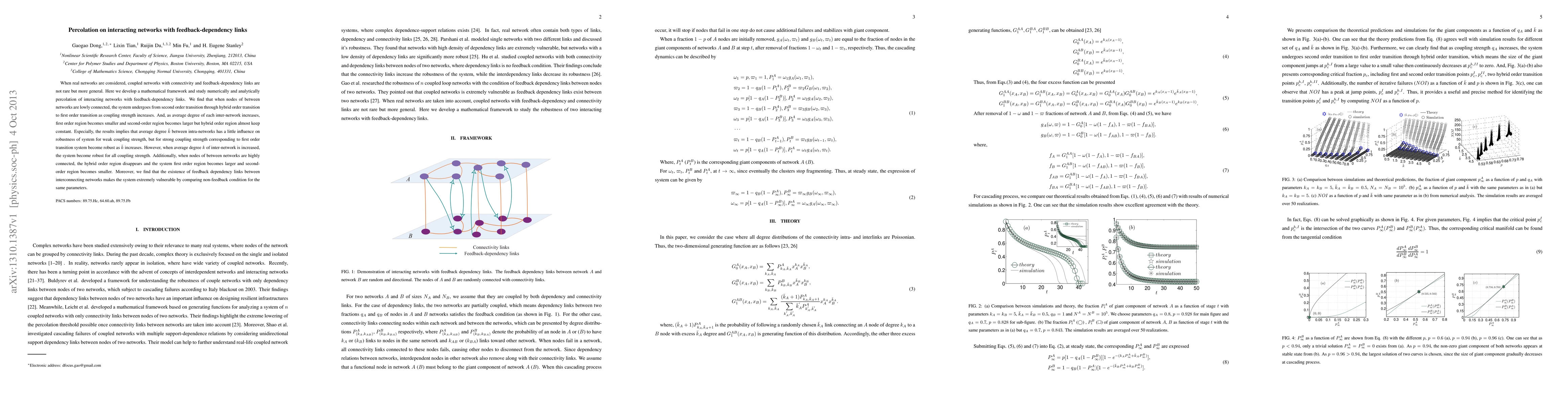 This paper develops a framework for studying percolation in interacting networks with feedback-dependency links, finding that coupling strength and inter-network connectivity influence the transition types from second to first order. It reveals that increased inter-network connectivity enhances system robustness, especially under strong coupling, and feedback dependency links significantly increase system vulnerability.