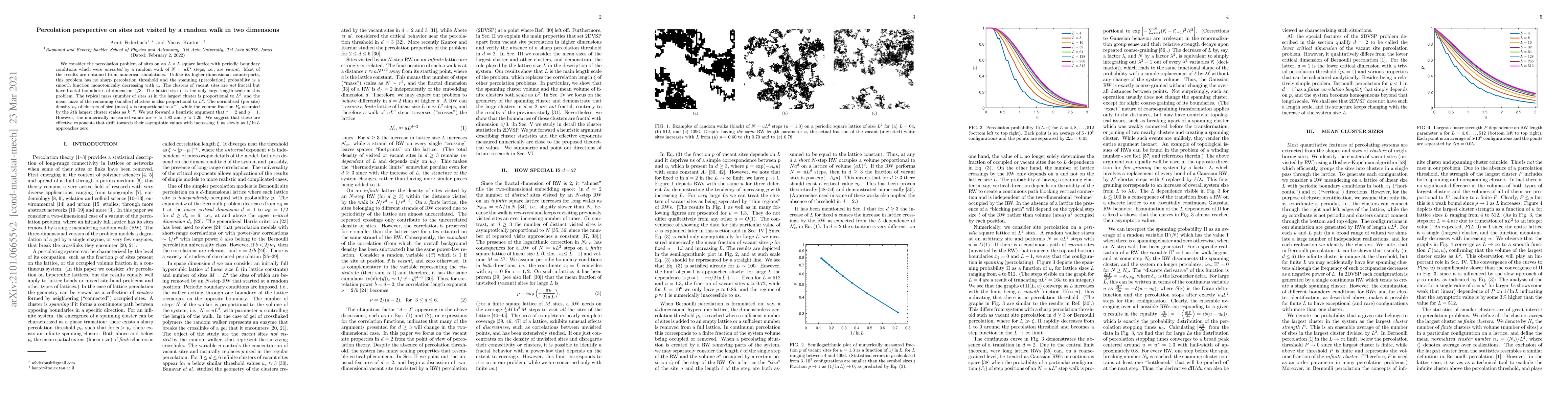 This research paper explores the percolation problem of unvisited sites on a 2D square lattice by random walk, finding clusters with fractal boundaries and no sharp percolation threshold, with typical mass proportional to L^2.