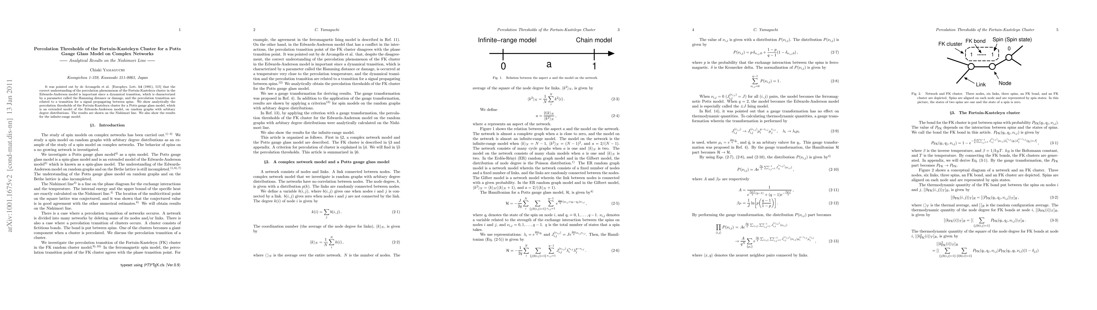 This paper analytically determines the percolation thresholds for the Fortuin-Kasteleyn cluster in a Potts gauge glass model on complex networks, demonstrating the relationship between percolation and the dynamical transition characterized by the Hamming distance. Results are presented on the Nishimori line and for the infinite-range model.