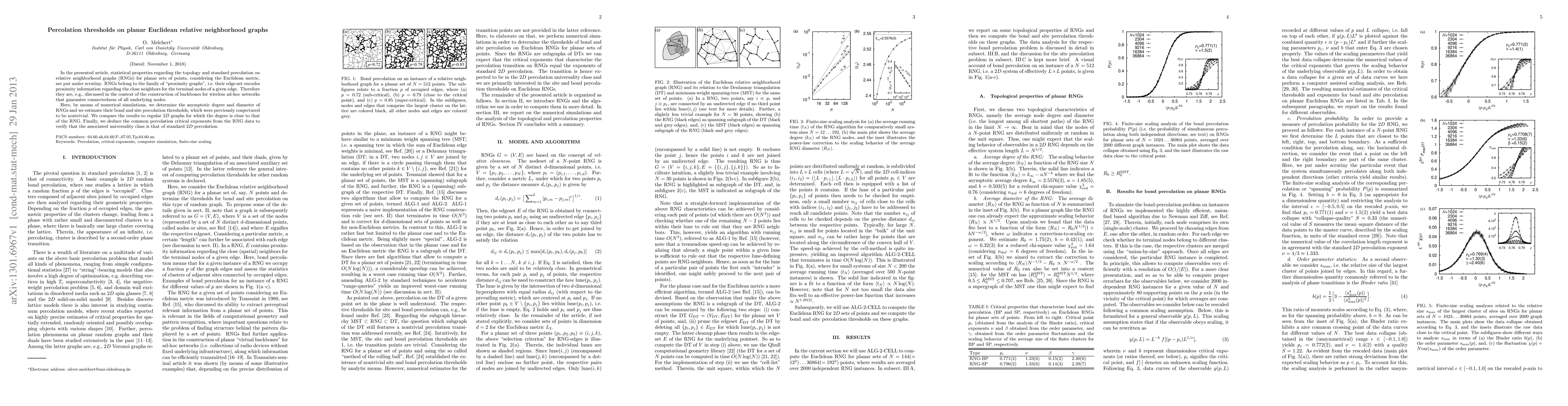 Researchers studied percolation thresholds on relative neighborhood graphs for planar sets of points in 2D space, finding that the bond and site percolation thresholds are nontrivial and consistent with standard 2D percolation.
