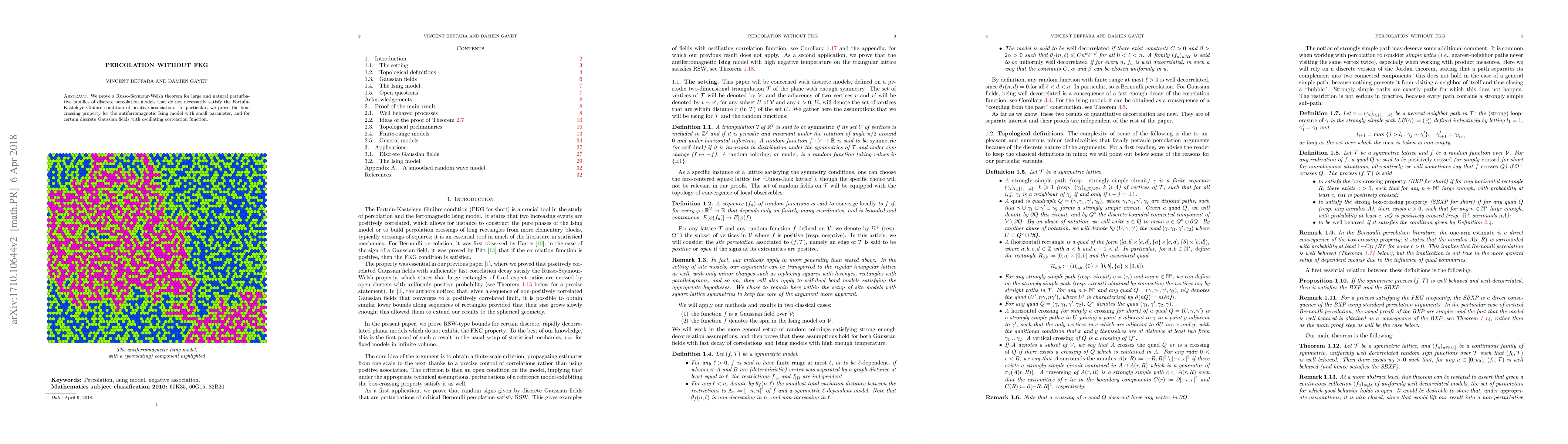 We prove a Russo-Seymour-Welsh theorem for large and natural perturbative families of discrete percolation models that do not necessarily satisfy the Fortuin-Kasteleyn-Ginibre condition of positive association. In particular, we prove the box-crossing property for the antiferromagnetic Ising model with small parameter, and for certain discrete Gaussian fields with oscillating correlation function.
