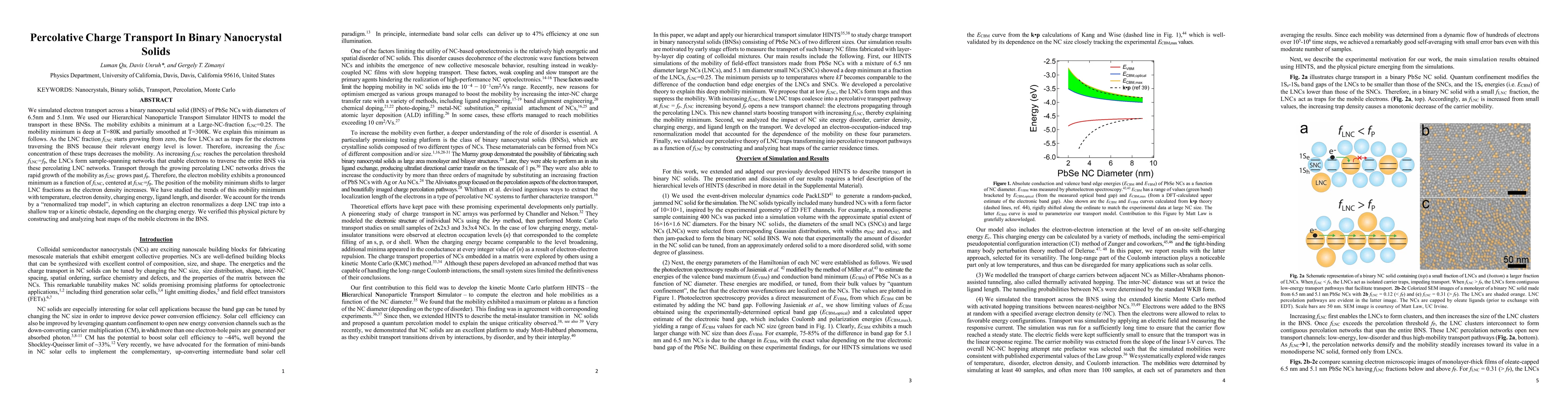 Researchers simulated electron transport in binary nanocrystal solids and found a mobility minimum at 25% of large nanocrystals, which grows as the concentration of these nanocrystals forms percolating networks that enable electrons to traverse the entire material.