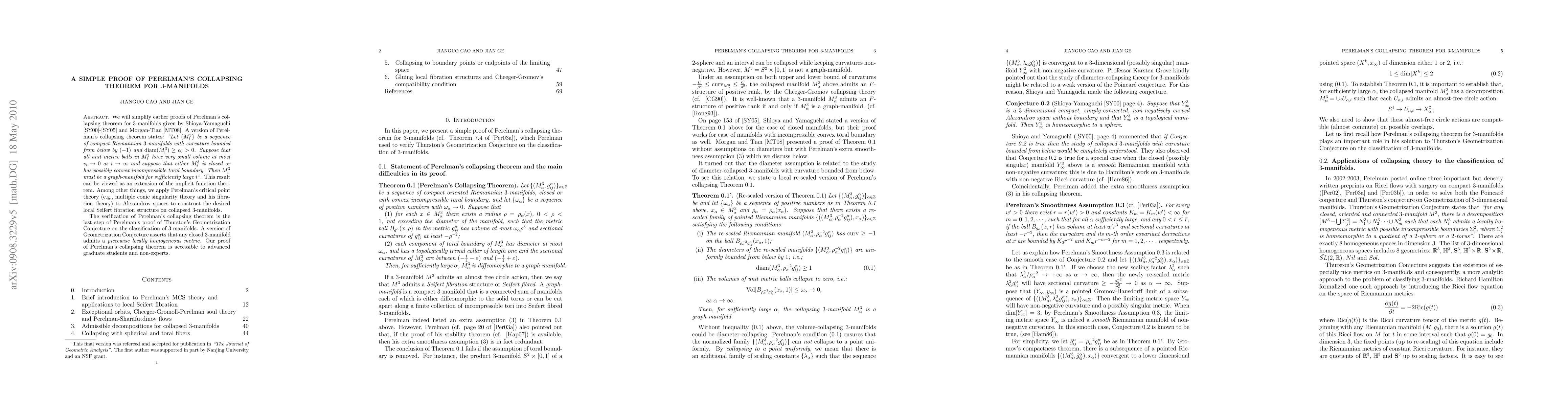 Perelman's collapsing theorem for 3-manifolds is simplified, leveraging semi-convex analysis to build local Seifert fibration structures. This verification completes Perelman's proof of Thurston's Geometrization Conjecture, making the proof accessible to advanced graduate students.