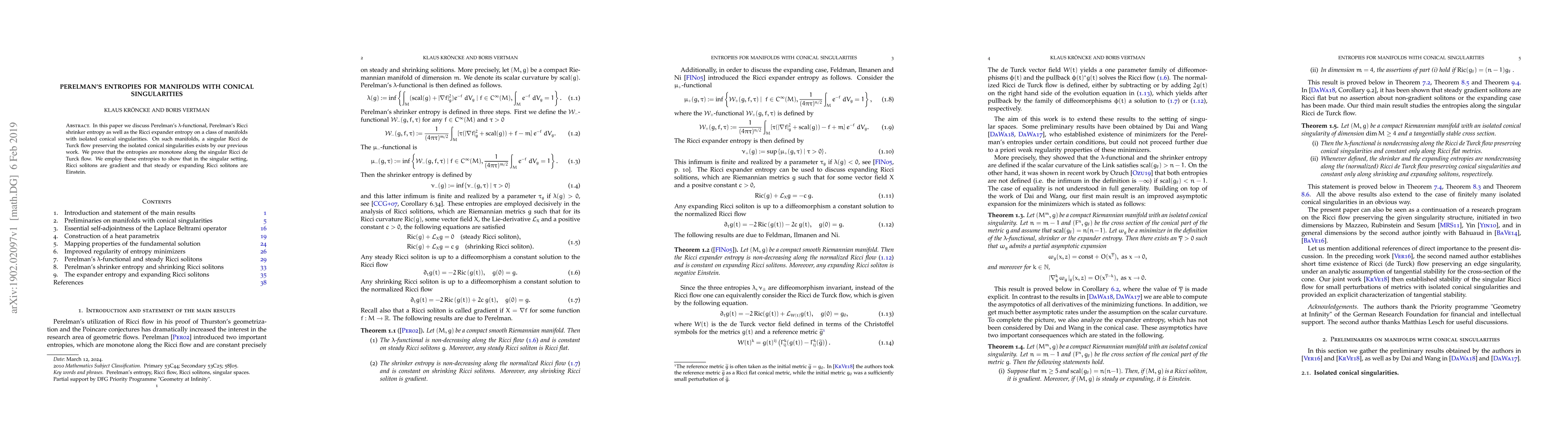 This paper examines Perelman's Lambda-functional, Ricci shrinker entropy, and Ricci expander entropy on manifolds with isolated conical singularities, proving their monotonicity along the singular Ricci de Turck flow. The research concludes that Ricci solitons in this setting are gradient, and steady or expanding Ricci solitons are Einstein.