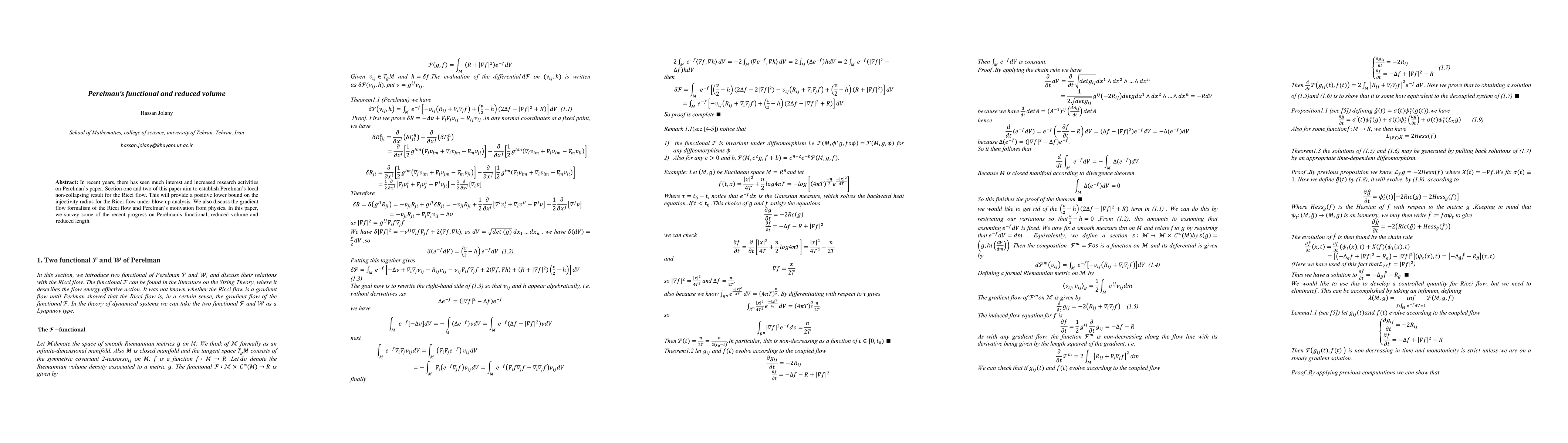This paper surveys Perelman's local non-collapsing result for the Ricci flow, establishing a positive lower bound on the injectivity radius, and discusses the gradient flow formalism and physical motivation behind Perelman's functional, reduced volume, and reduced length.