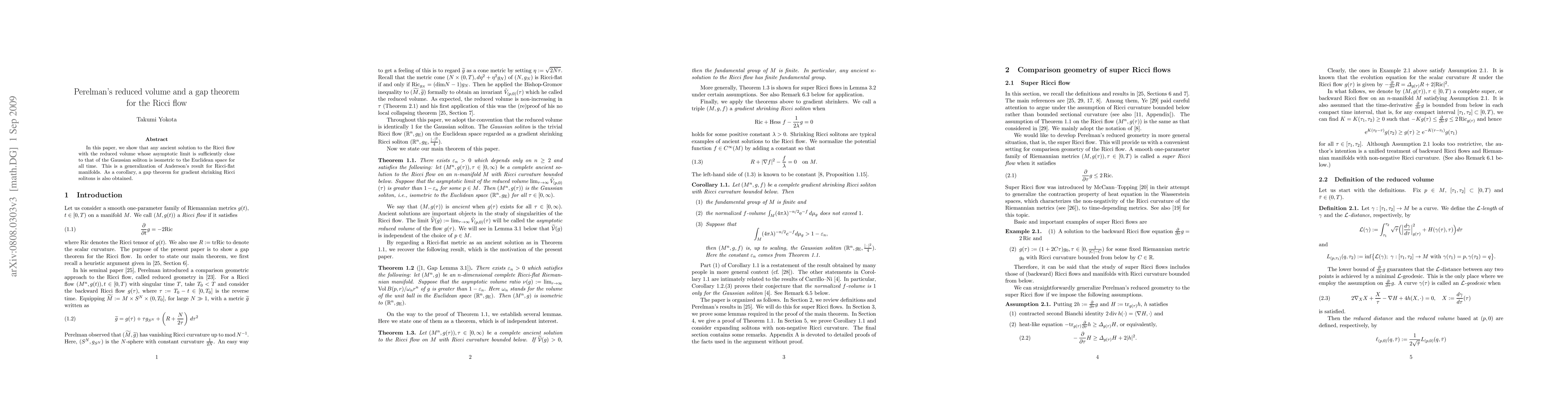 In this paper, we show that any ancient solution to the Ricci flow with the reduced volume whose asymptotic limit is sufficiently close to that of the Gaussian soliton is isometric to the Euclidean space for all time. This is a generalization of Anderson's result for Ricci-flat manifolds. As a corollary, a gap theorem for gradient shrinking Ricci solitons is also obtained.