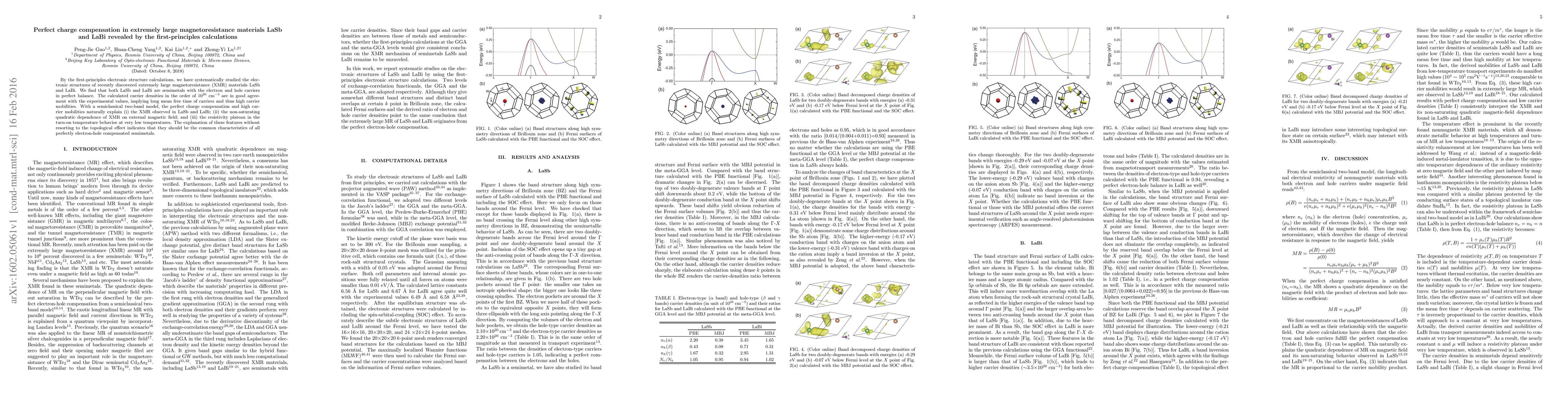 This study reveals that LaSb and LaBi exhibit perfect charge compensation in their electronic structures, leading to extremely large magnetoresistance and high carrier mobility, as demonstrated by first-principles calculations. The findings suggest these characteristics are intrinsic to all electron-hole balanced semimetals.