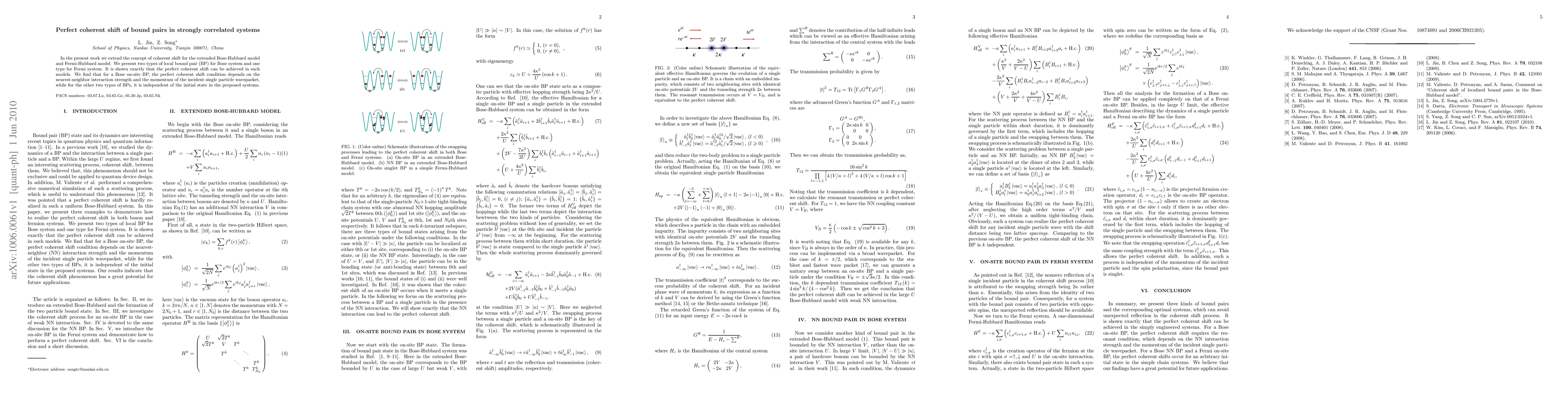 In the present work we extend the concept of coherent shift for the extended Bose-Hubbard model and Fermi-Hubbard model. We present two types of local bound pair (BP) for Bose system and one type for Fermi system. It is shown exactly that the perfect coherent shift can be achieved in such models. We find that for a Bose on-site BP, the perfect coherent shift condition depends on the nearest-neighbor interaction strength and the momentum of the incident single particle wavepacket, while for the other two types of BPs, it is independent of the initial state in the proposed systems.