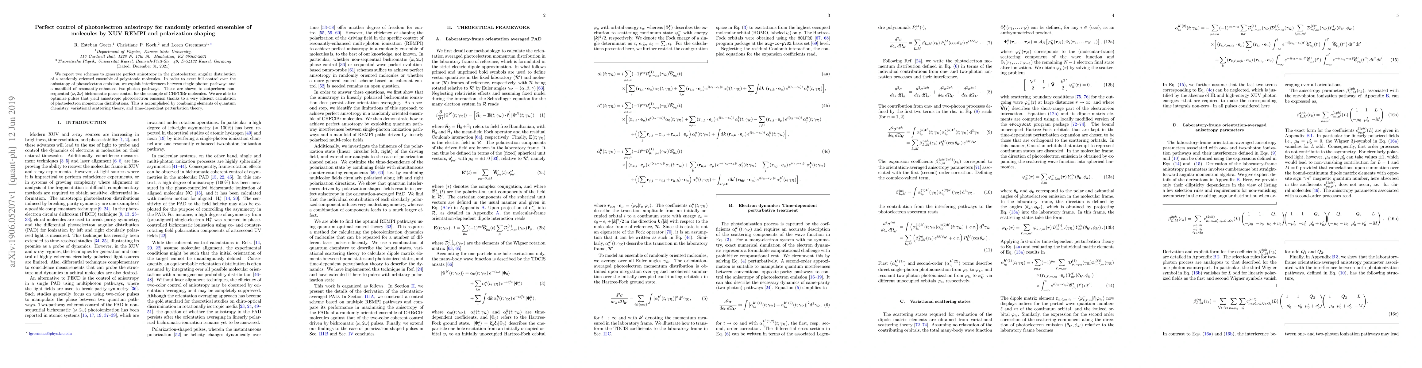 We report two schemes to generate perfect anisotropy in the photoelectron angular distribution of a randomly oriented ensemble of polyatomic molecules. In order to exert full control over the anisotropy of photoelectron emission, we exploit interferences between single-photon pathways and a manifold of resonantly-enhanced two-photon pathways. These are shown to outperform non-sequential $(\omega,2\omega)$ bichromatic phase control for the example of CHFClBr molecules. We are able to optimize pulses that yield anisotropic photoelectron emission thanks to a very efficient calculation of photoelectron momentum distributions. This is accomplished by combining elements of quantum chemistry, variational scattering theory, and time-dependent perturbation theory.