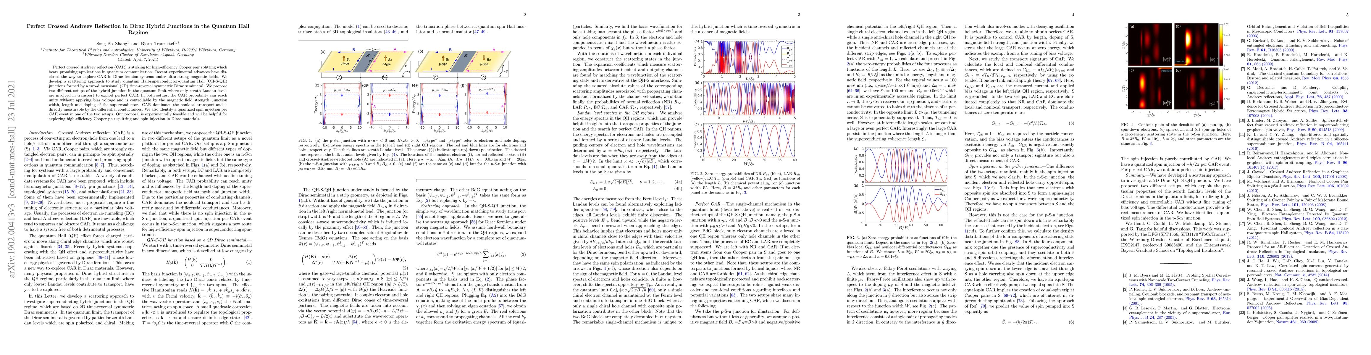 This paper explores perfect crossed Andreev reflection in Dirac hybrid junctions under quantum Hall conditions, proposing two setups that achieve unity CAR probability without bias voltage. The findings suggest high-efficiency Cooper pair splitting and quantized spin injection, offering promising applications in quantum communication.