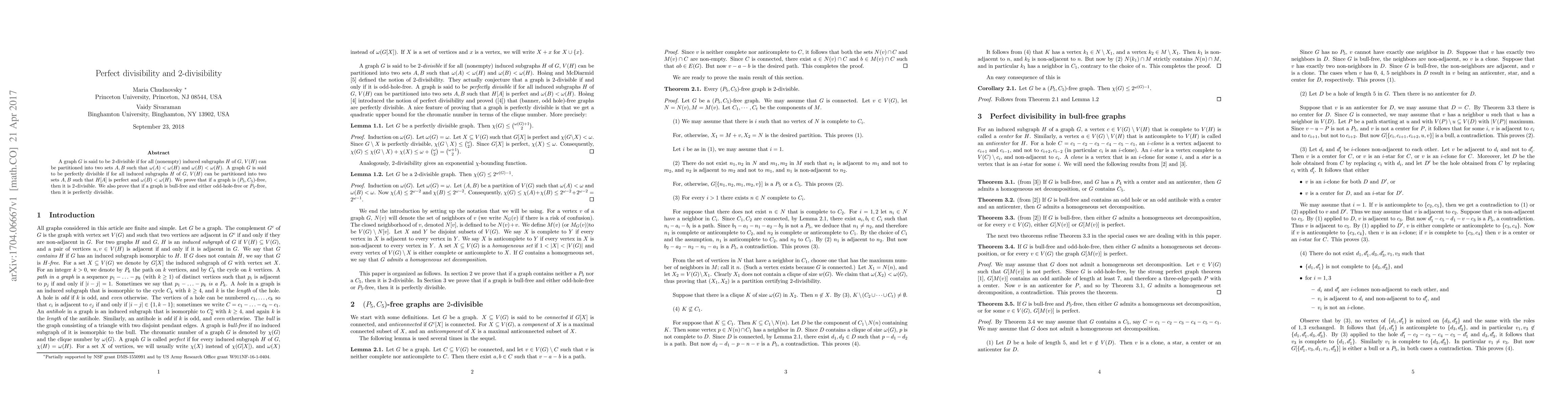 A graph is 2-divisible if its subgraphs can be partitioned into smaller parts with lower edge connectivity, while a graph is perfectly divisible if these partitions result in perfect subgraphs and smaller edges.