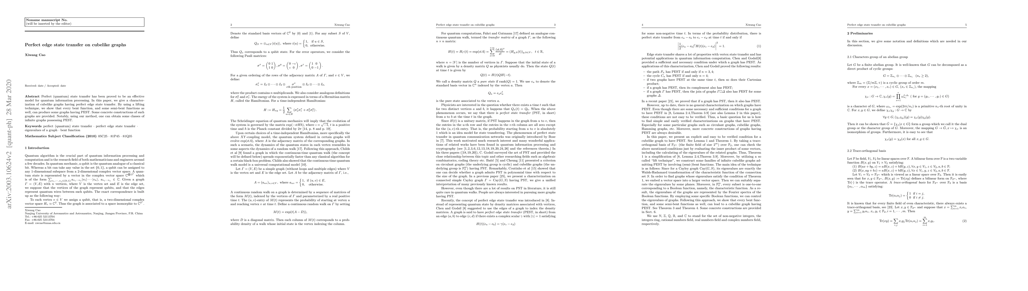 This paper characterizes cubelike graphs that exhibit perfect edge state transfer (PEST) and demonstrates that bent and semi-bent functions can generate such graphs. The authors provide concrete constructions and show that their method can also yield infinite graphs with PEST properties.